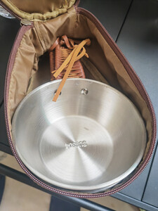 容量很满意,期待下次出去露营的时候用了。皮革绳比想象中好编,编了也很出效果。要是把手能够收纳折叠就好了。那简直完美!!!