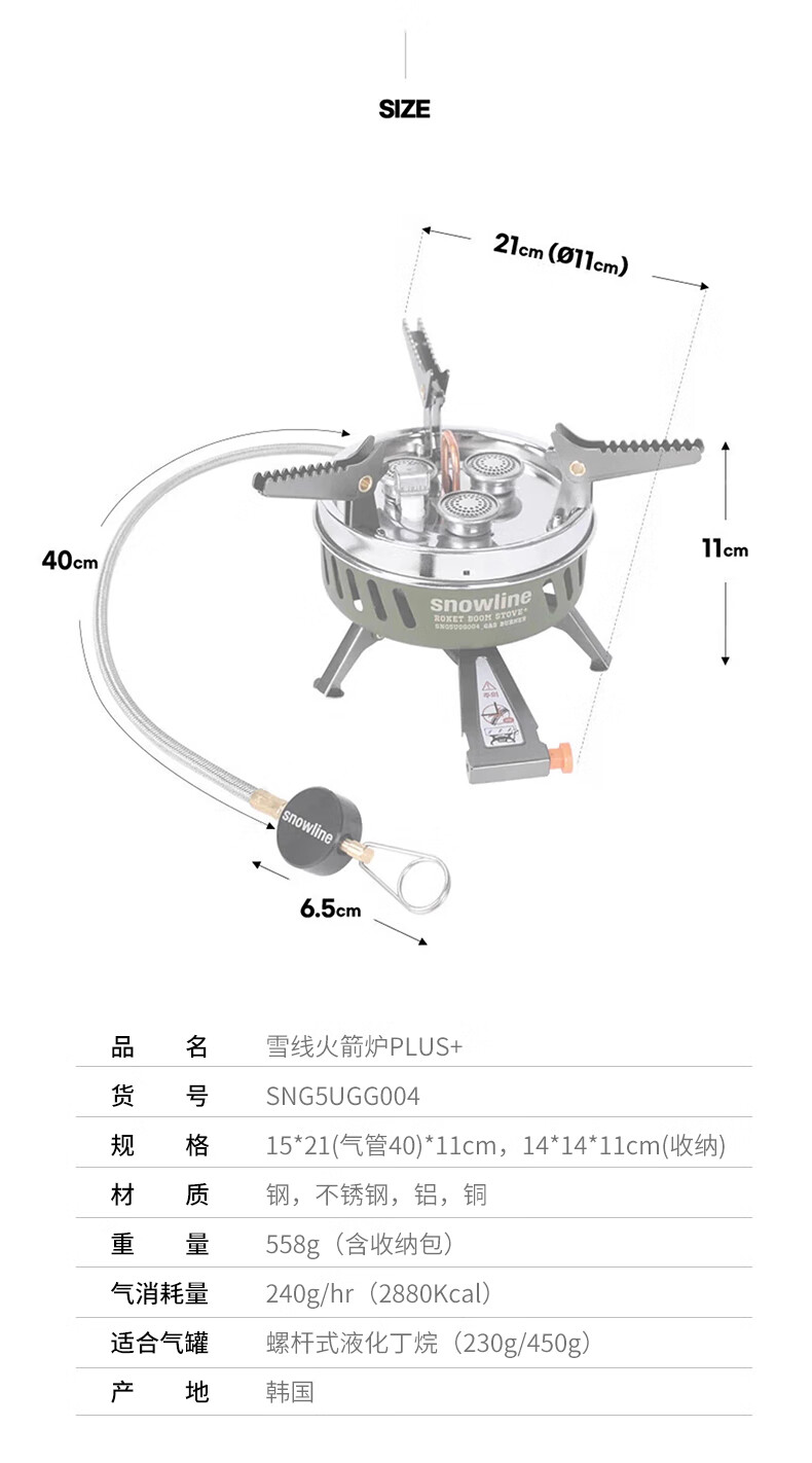 SNOWLINE韩国雪线火箭炉户外露营轻量便携野炊炉具大功率燃气炉子 【定制】改装0.5单元IGT炉板