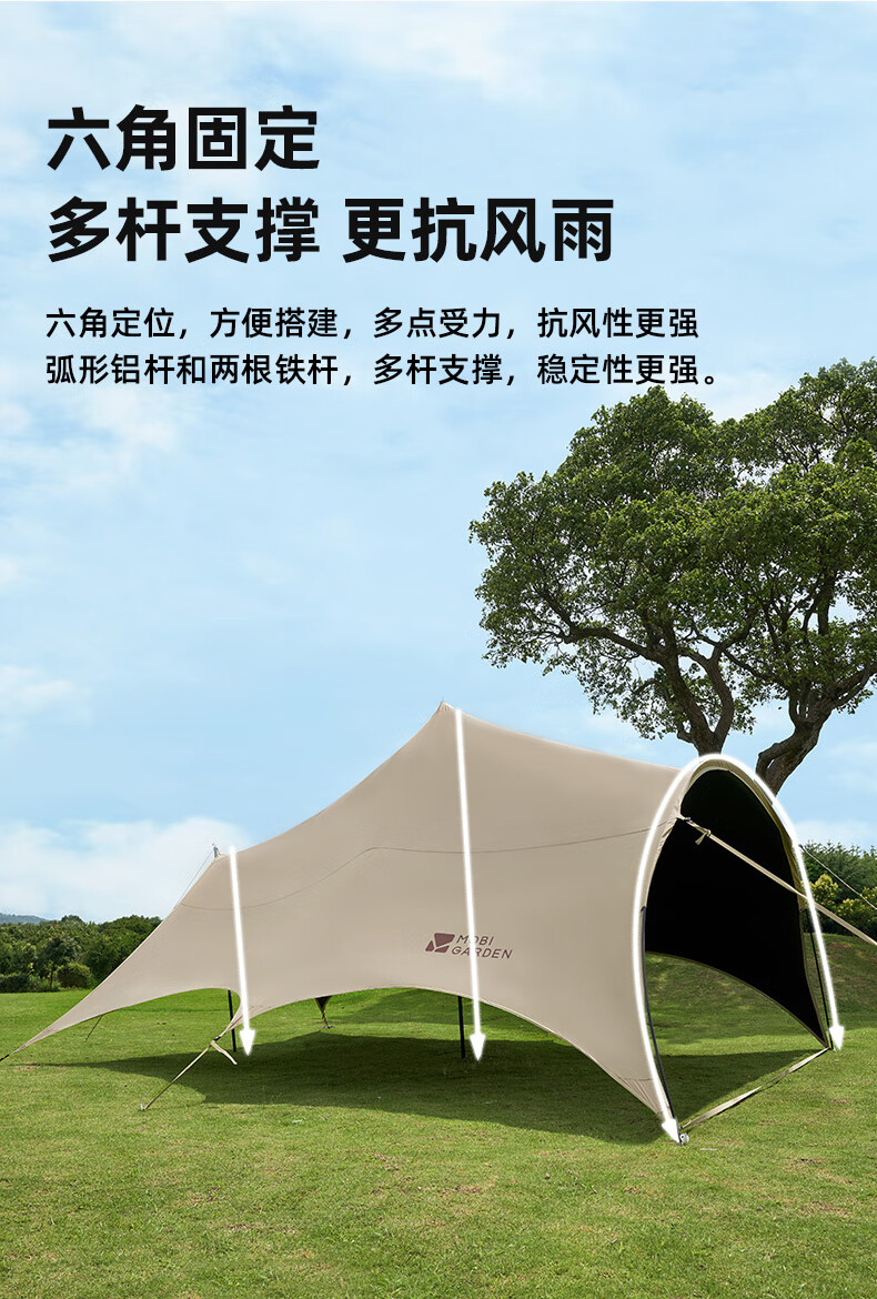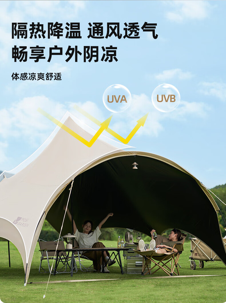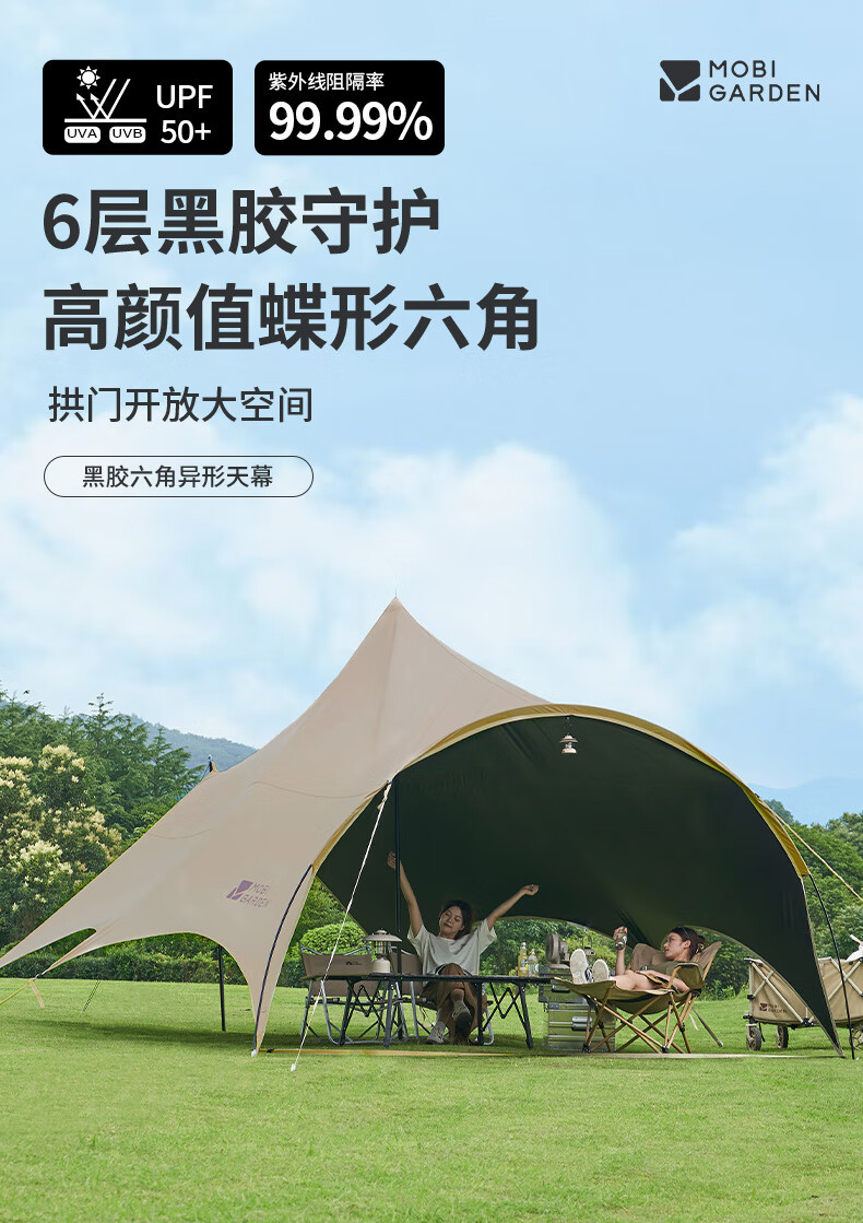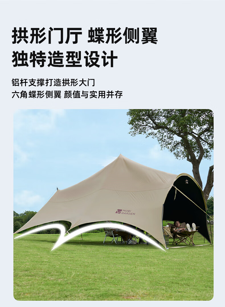 牧高笛(MOBIGARDEN)观庭黑胶天幕 户外露营防雨防晒大空间隧道式蝶形牛津布黑胶天幕 观庭A270/和风沙