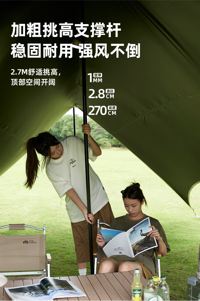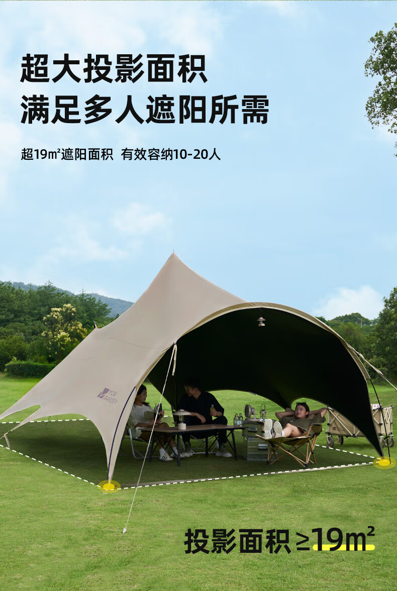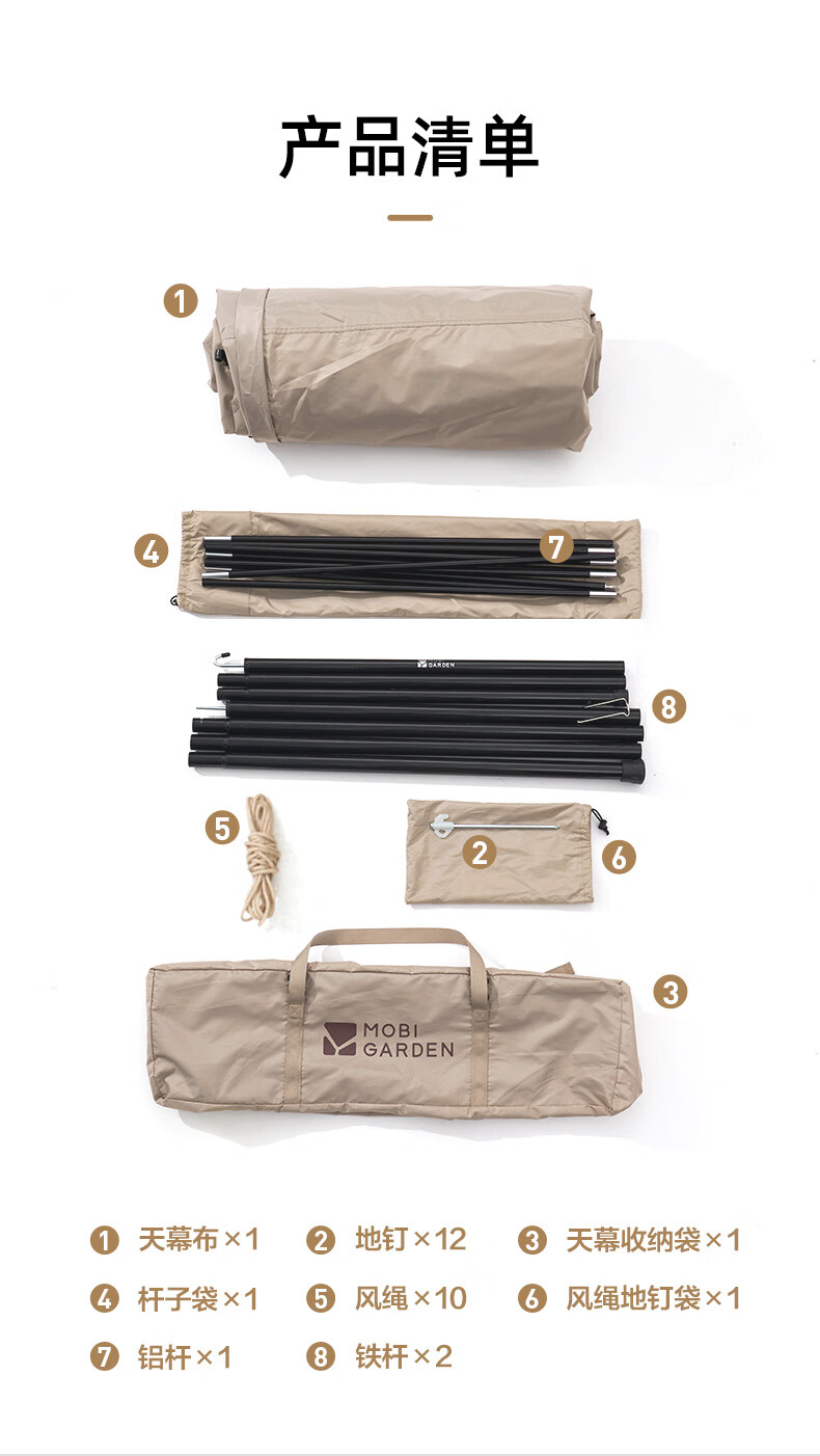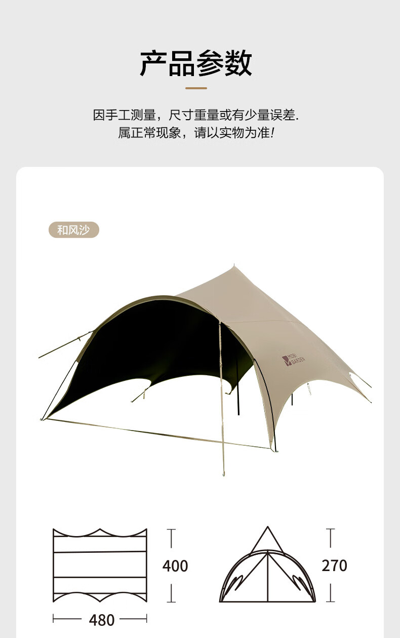 牧高笛(MOBIGARDEN)观庭黑胶天幕 户外露营防雨防晒大空间隧道式蝶形牛津布黑胶天幕 观庭A270/和风沙