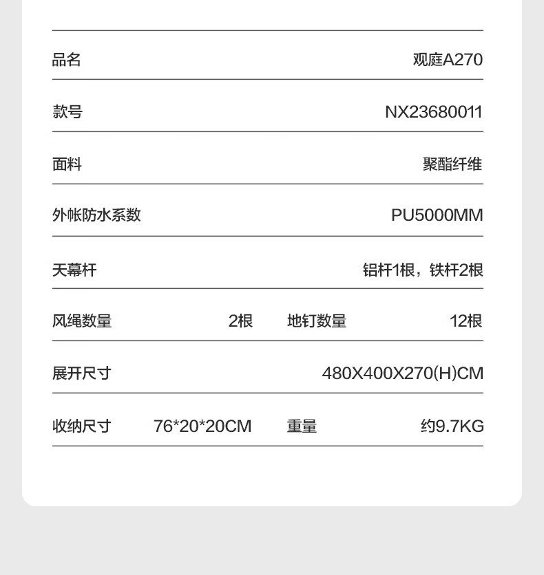 牧高笛(MOBIGARDEN)观庭270天幕 户外露营大空间防雨防晒蝶形牛津布黑胶天幕 观庭A270牛津黑胶拱形天幕