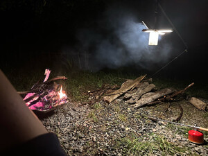 开始玩火,这家伙还挺能装,反正今天没试出来极限,两个支架很灵活,可以放下各种煮具,单用一个也不错,可以增加火焰区,不贵用着玩没问题各位,轻,很轻,装包里就行