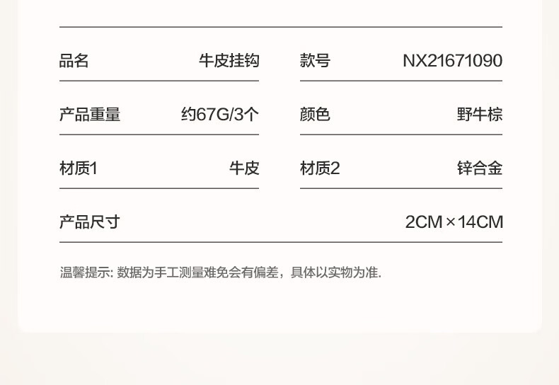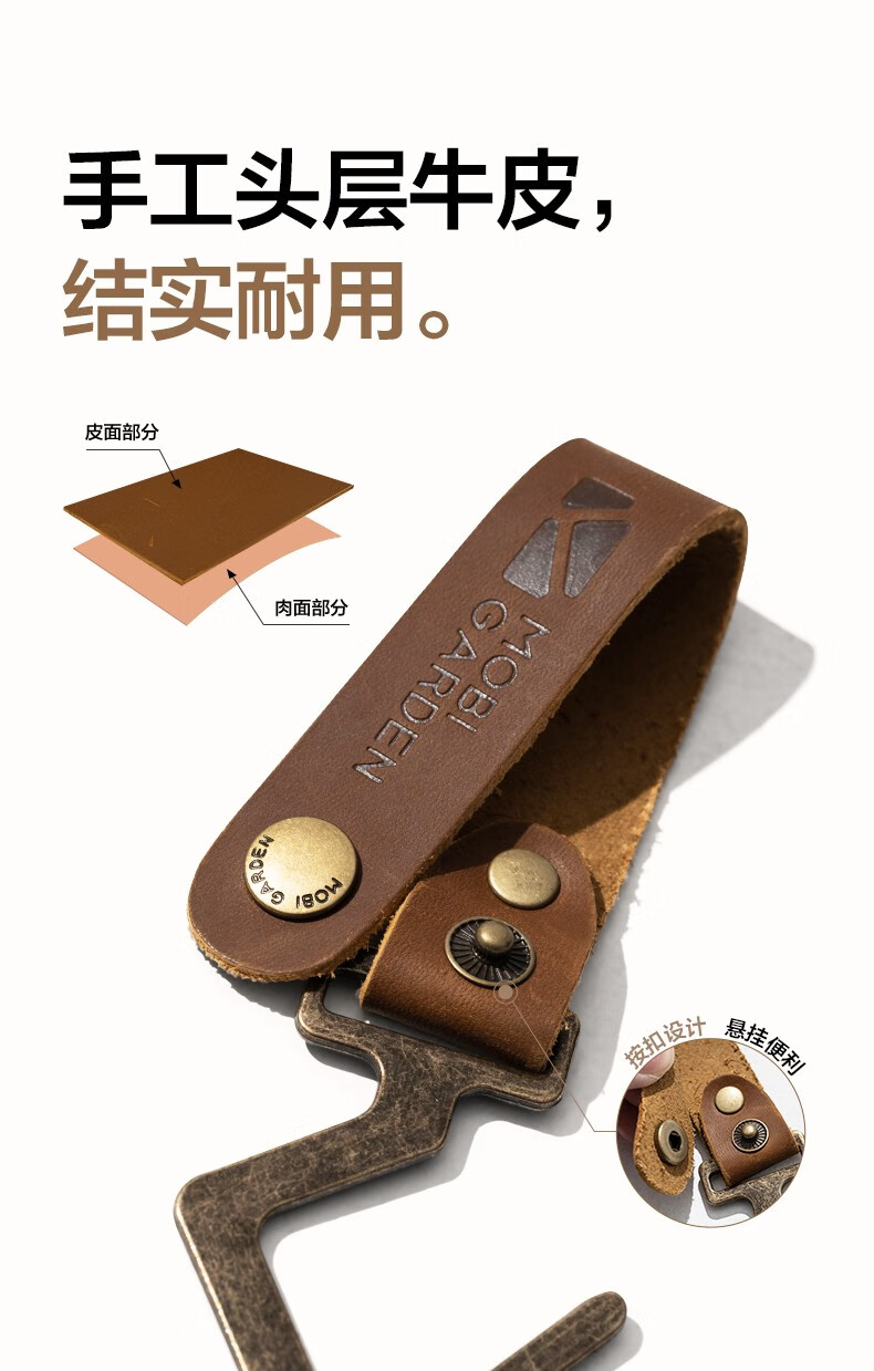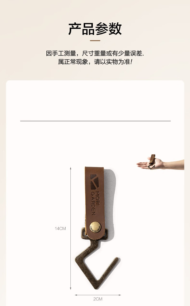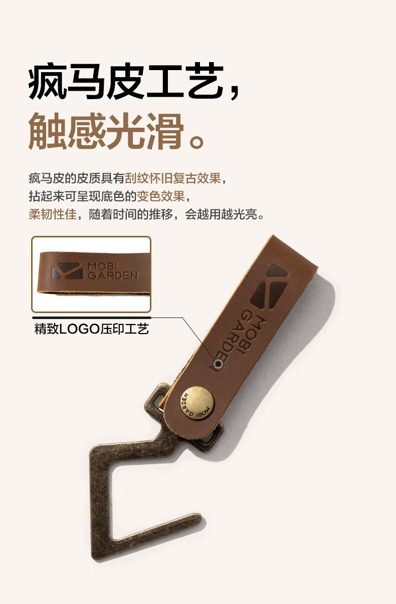 牧高笛(MOBIGARDEN)牛皮挂钩 户外露营晾衣绳置物架挂钩悬挂置物牛皮挂扣 牛皮挂钩*1包(不含悬挂物)