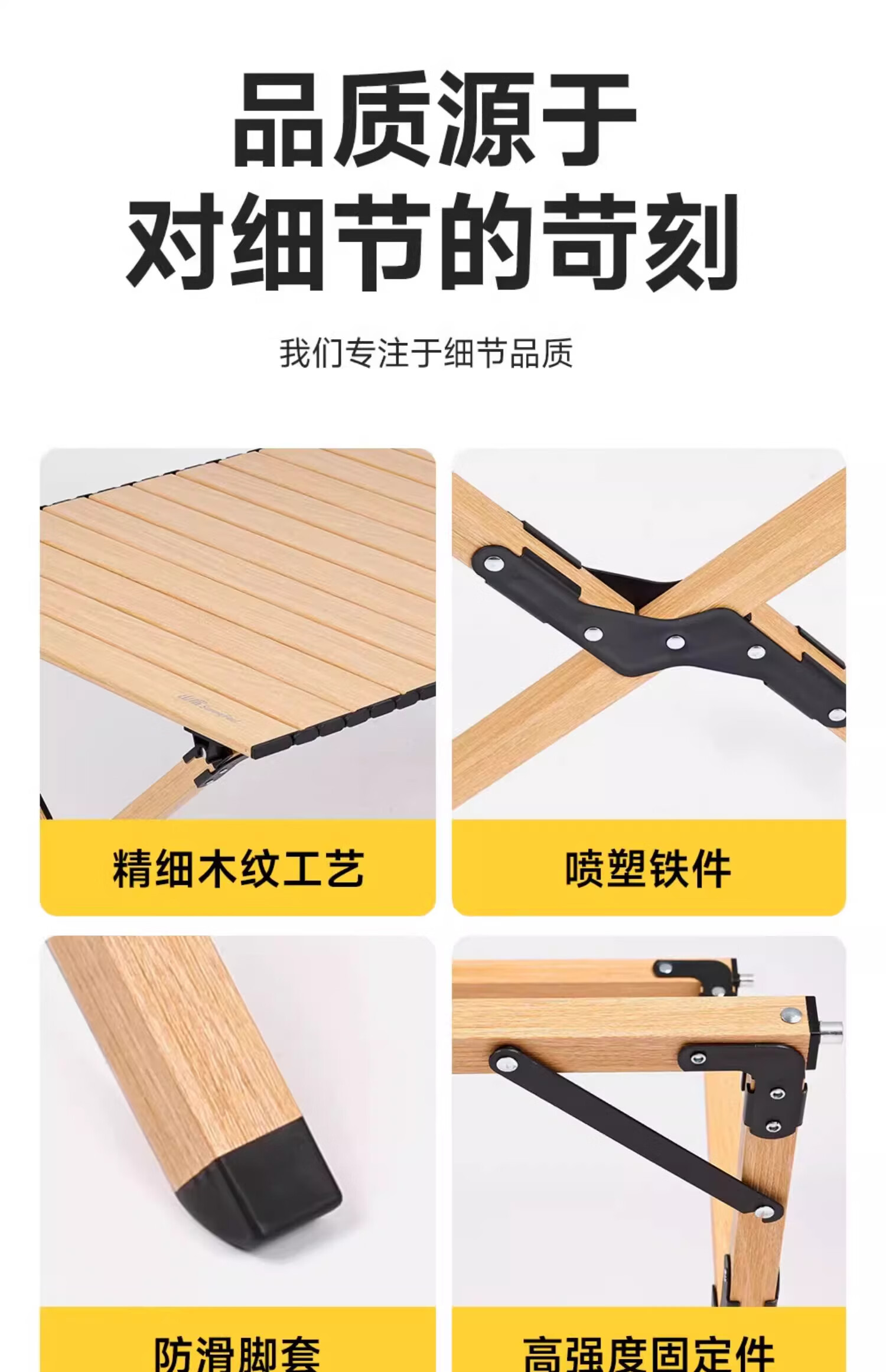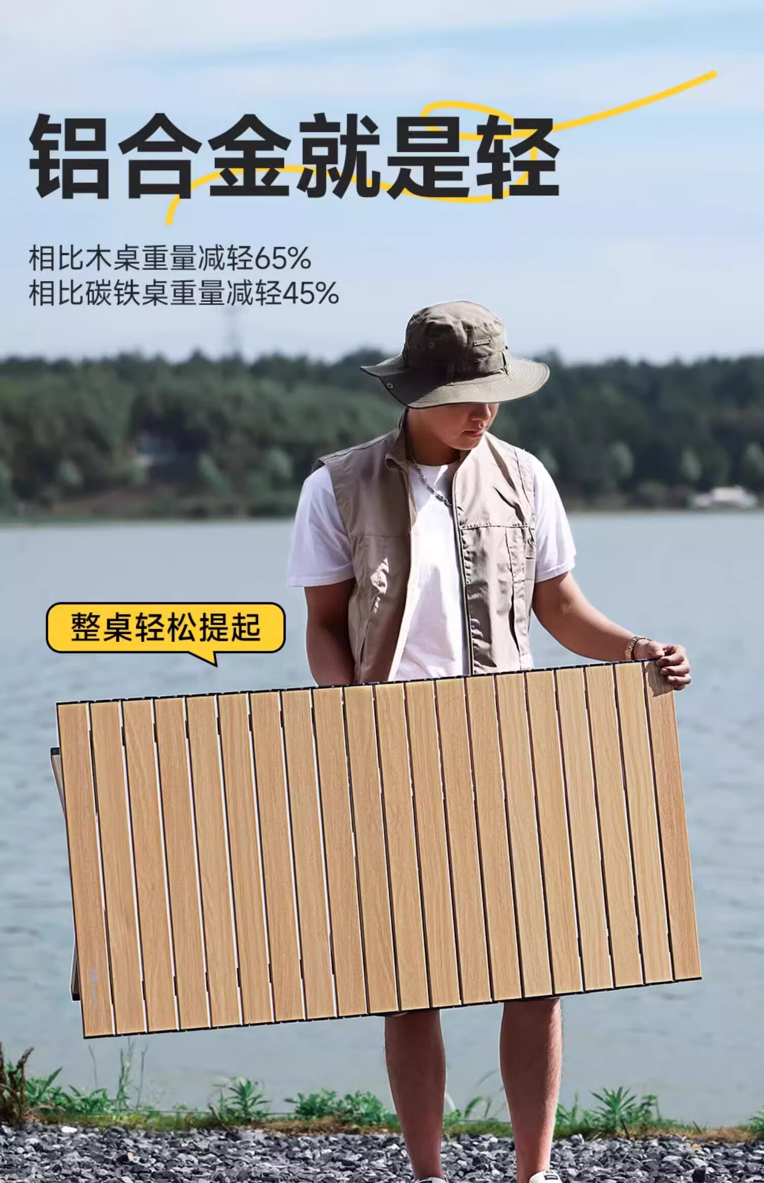 Naturehike挪客方诺铝合金挂式蛋卷桌子户外露营超轻折叠桌椅野餐便携式装备 黑胡桃/大号升级款/121*60*45cm