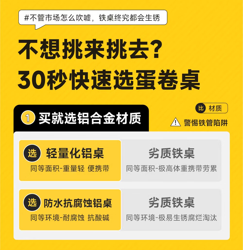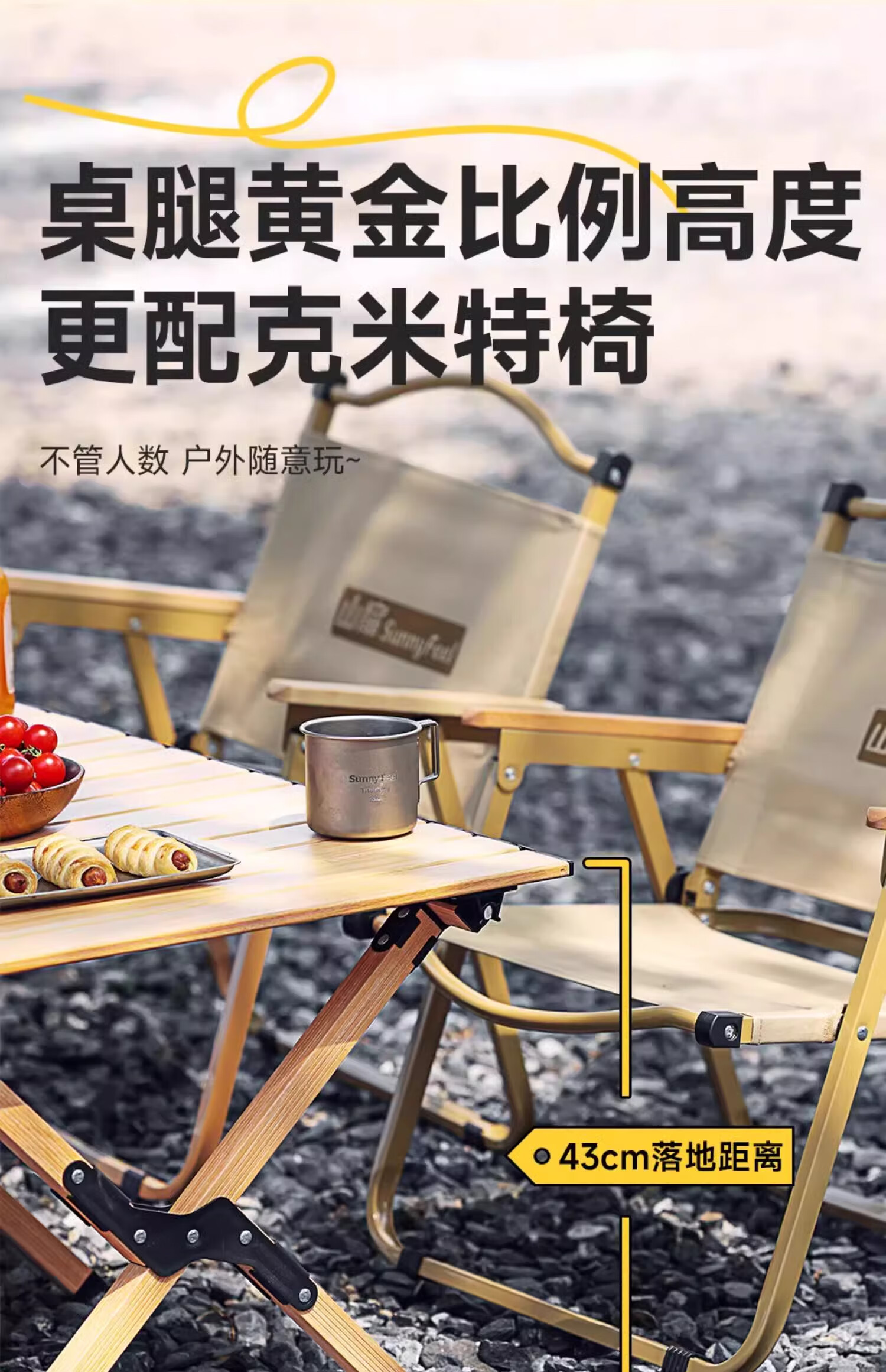 山扉山姆同款蛋卷桌滑轨蛋卷桌铝合金户外露营桌便携野餐野营桌 滑轨蛋卷桌 卡其色