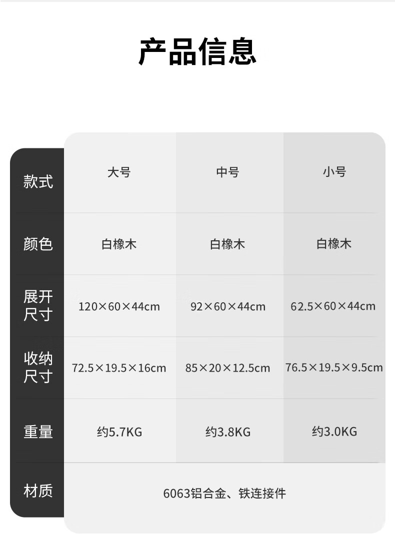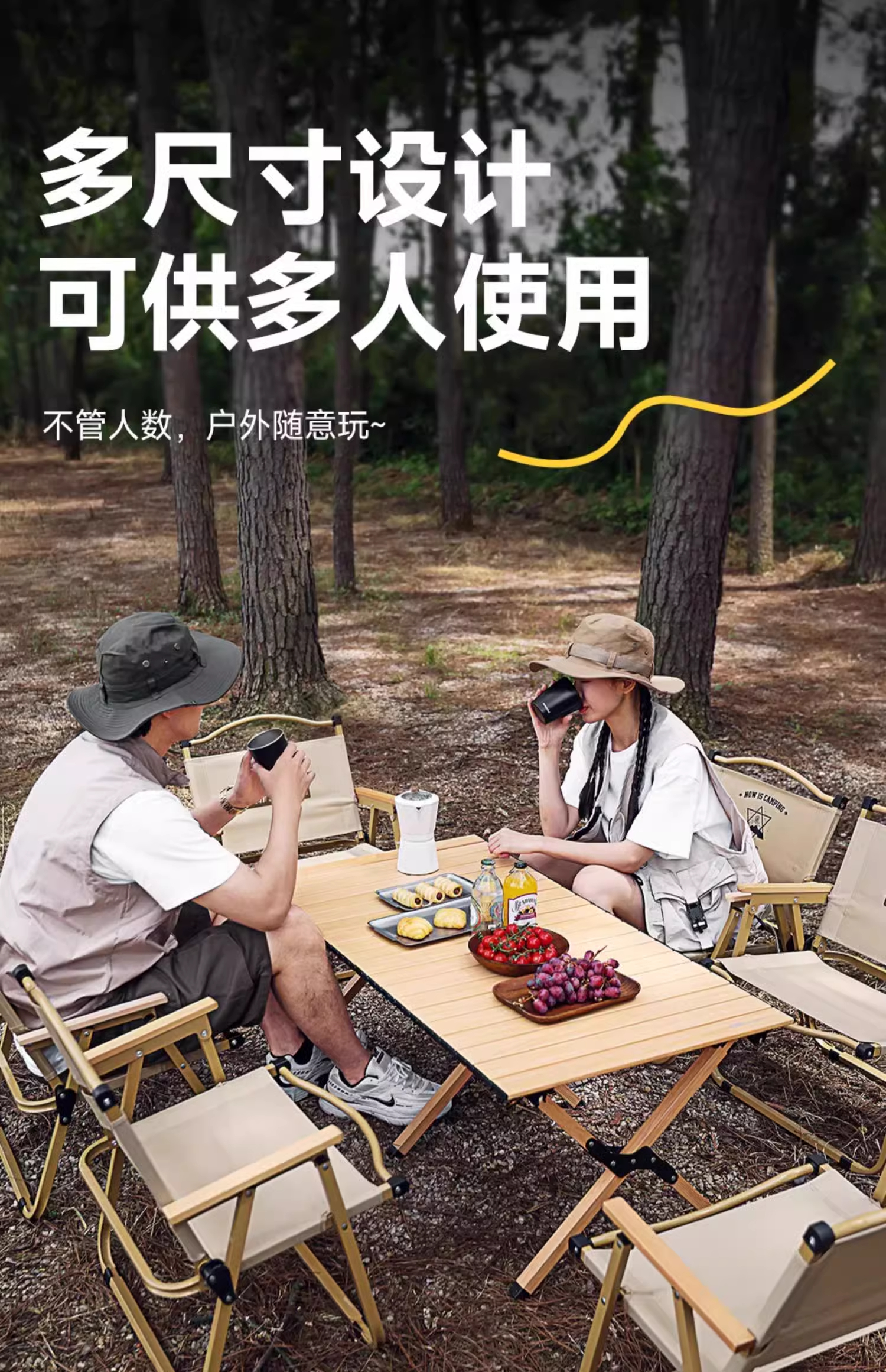 整体做工很高,细节处理很到位,大小可以4-6个人使用,折叠后方便携带,重量也很轻,木纹工艺很好,家里或者在外面使用颜值很高,最重要的是女儿很满意👍 春天了可以多出去坐坐了,很好的购物体验,不愧是大品牌