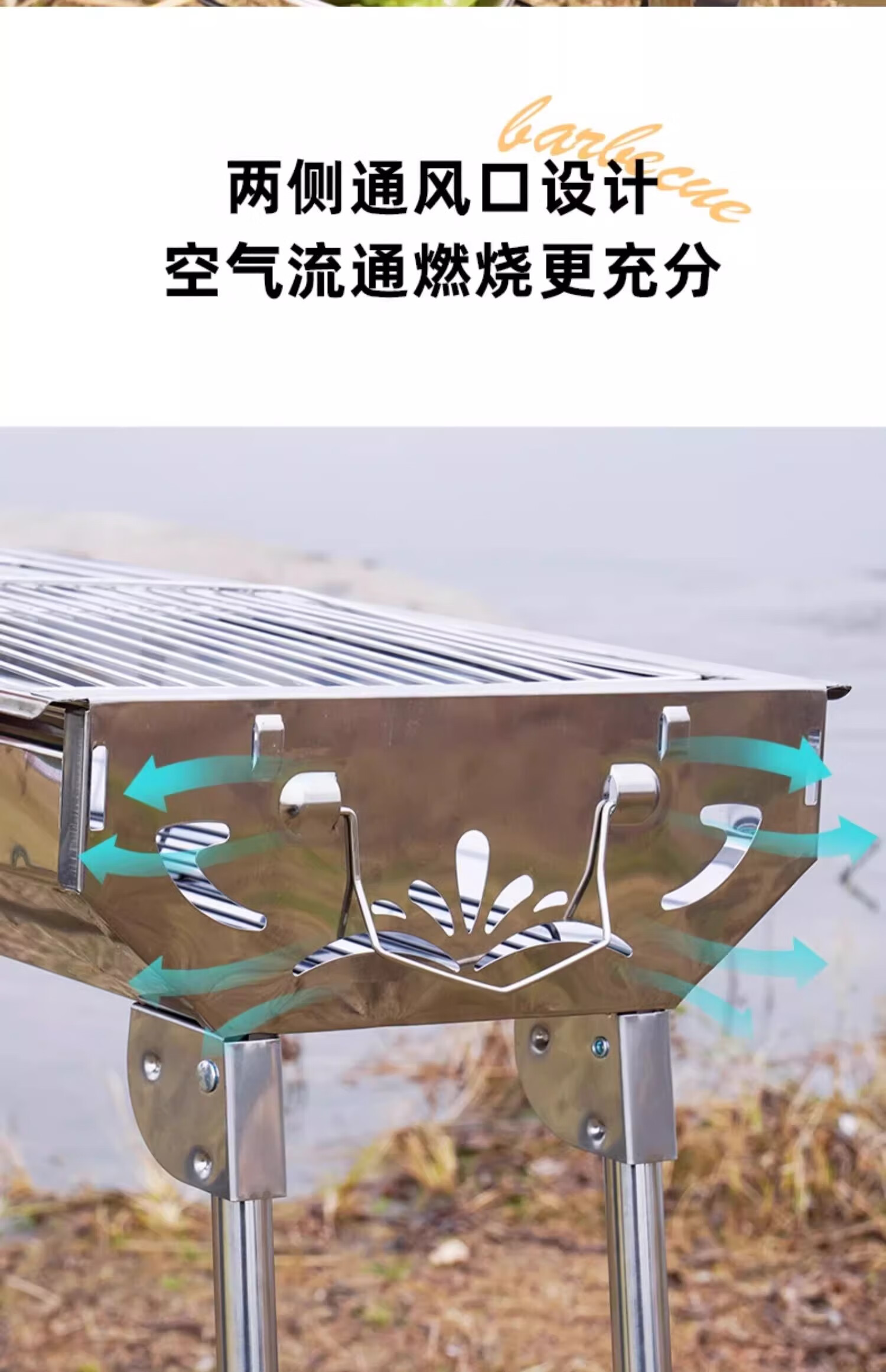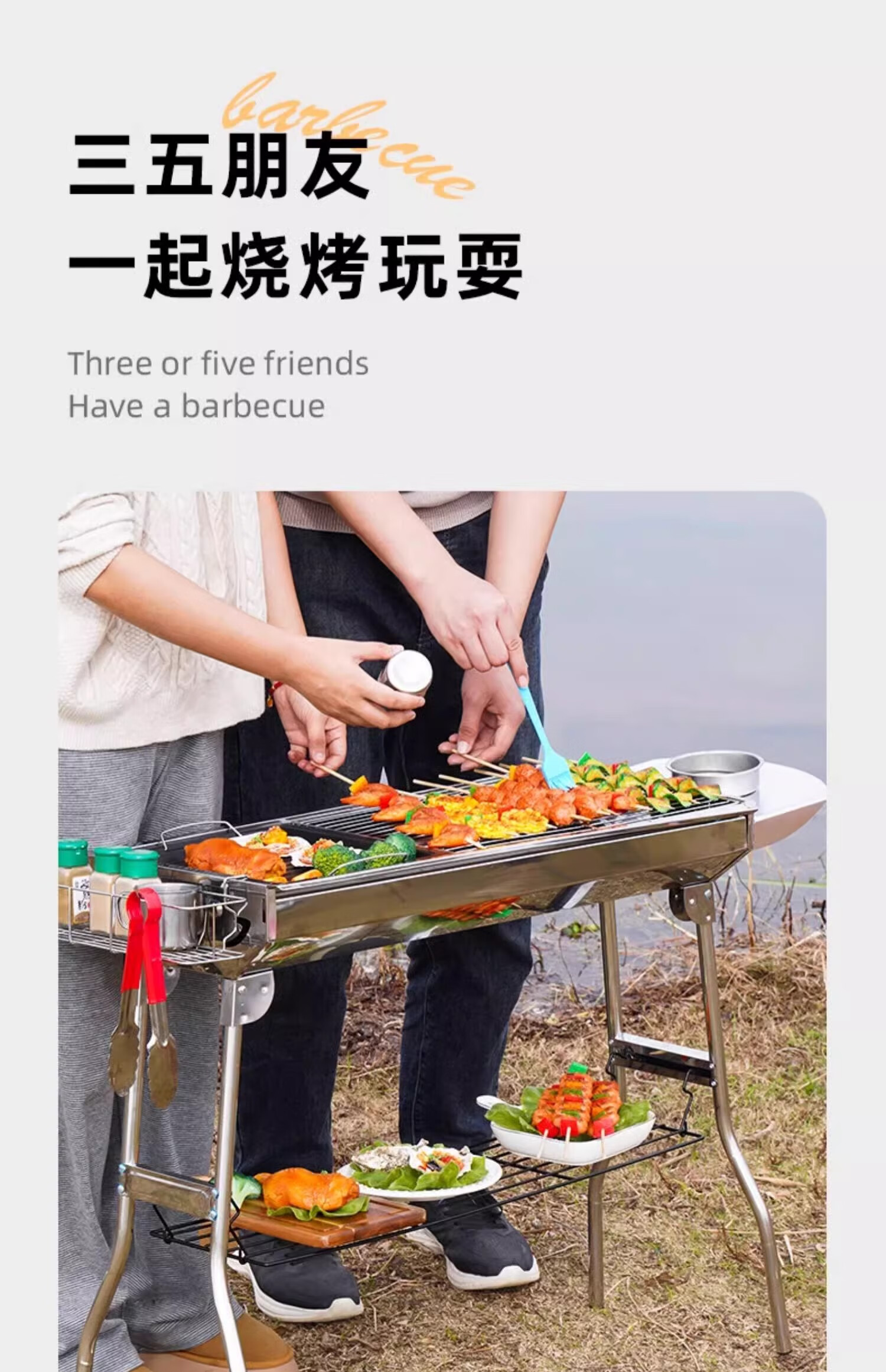 户外烧烤很方便,折叠设计不占地方,木炭也够用,性价比高。