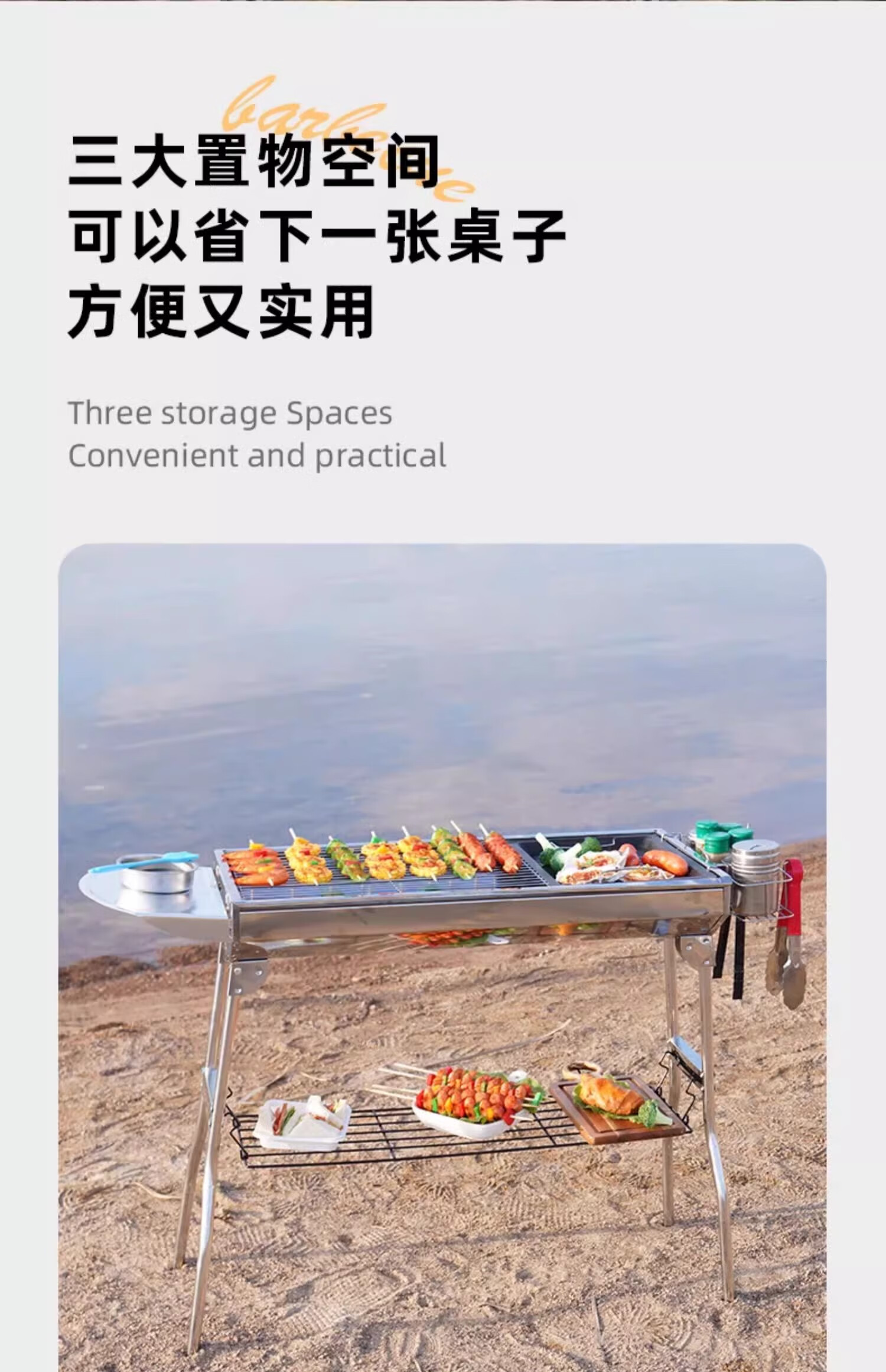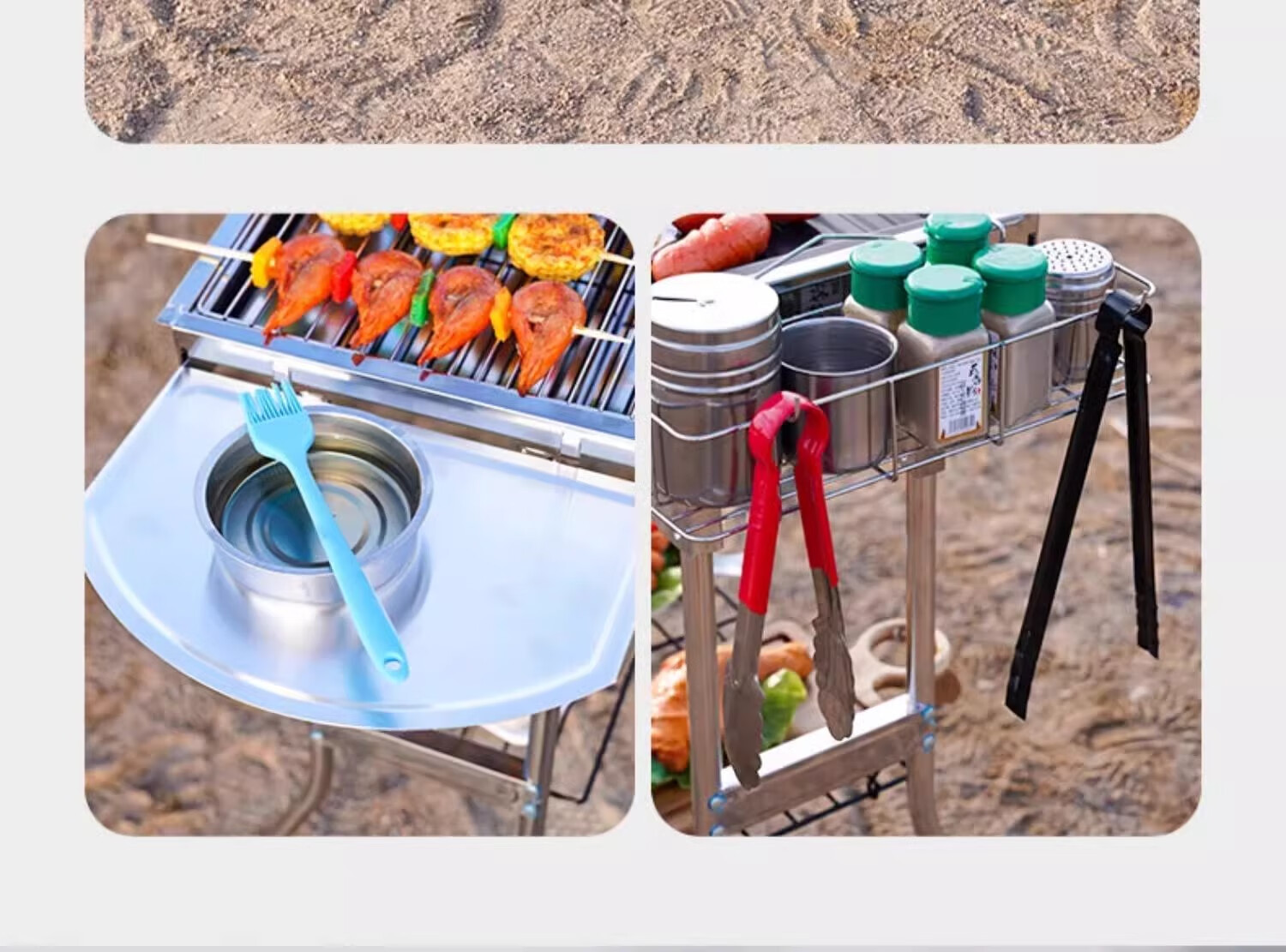 客服回复非常快,烧烤炉质量不错,高温下也很耐用,折叠设计方便收纳,野餐带出去超省心,煎盘和置物架很实用。