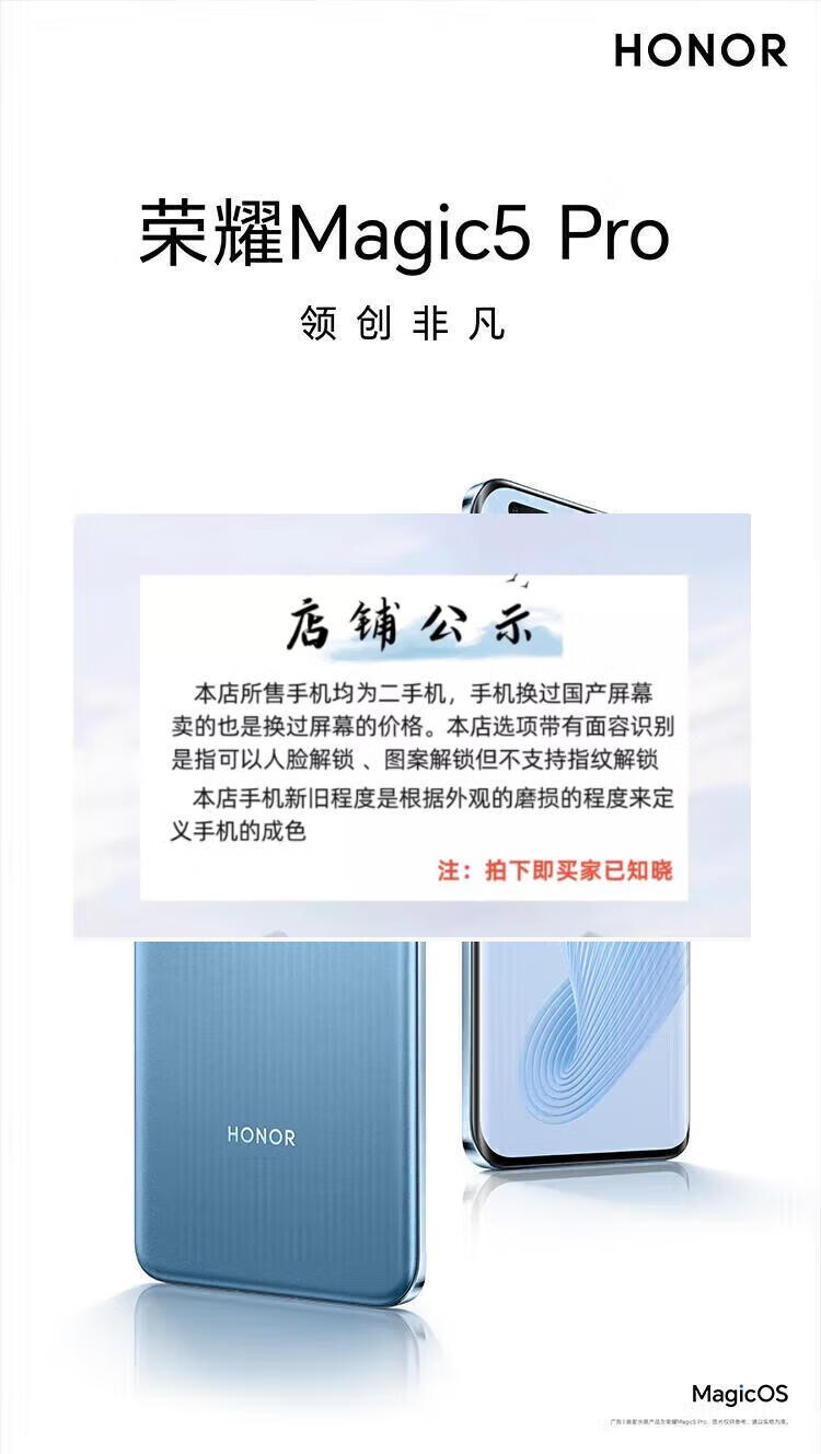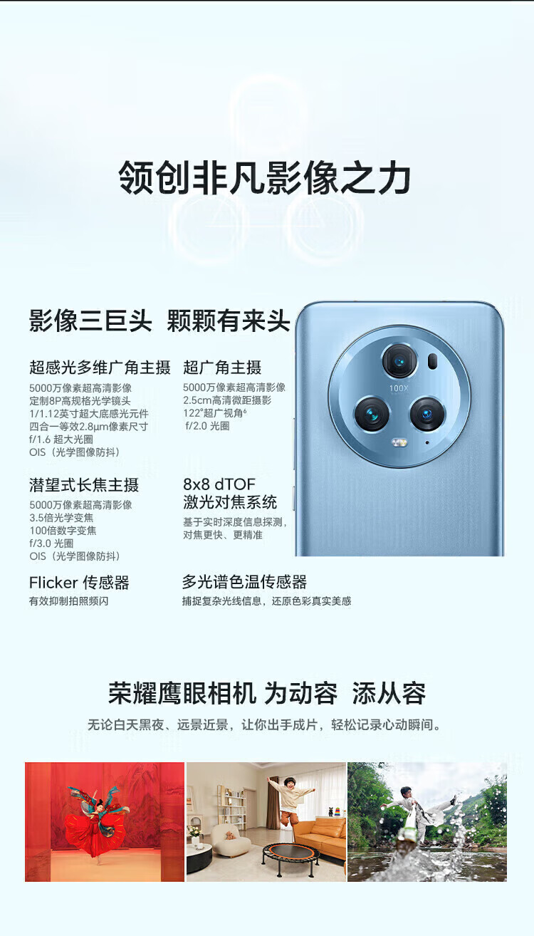 荣耀 Magic5 Pro 【未拆封未激活】荣耀青海湖电池手机 鹰眼相机 高通骁龙8Gen2 悬浮流线 四曲屏 勃朗蓝 16GB+512GB