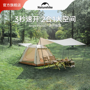 Naturehike挪客Ango自动速开帐篷天幕二合一 户外露营装备3-4人黑胶遮阳防晒 3-4人/黑胶天幕版