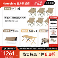 Naturehike挪客星月聚拢式月亮椅户外露营野餐便携折叠椅钓鱼懒人导游椅凳子 卡其色L码6人豪华露营套餐