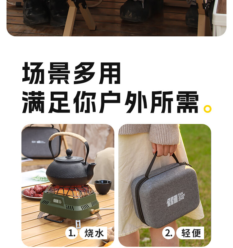 个头小小的,预期不会暖和,但取暖效果却出乎意料的好,放背包里刚刚好,帐篷取暖是完全够用的,还能拿来煮水喝热水,还是很不错的,推荐!