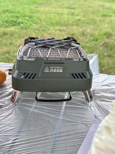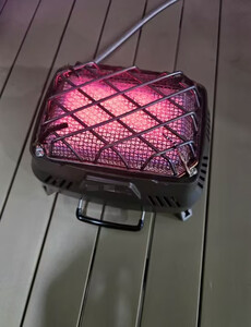哈哈,取暖用的被我拿来当炉子了,还真别说,火力还不小,但也没有普通的卡式炉大,适合拿来慢烤,就是要注意底下不要垫容易烧着的东西,炉子周边温度还是蛮高的