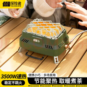 探险者卡式炉取暖器煮茶炉户外卡磁炉防爆套装小巧便携红外烤火炉 黑色取暖炉+铸铁壶+气罐券*2