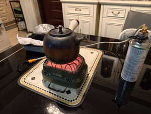 拿到当天就测了下,周边温度的提升是否满足需求的,拿来煮茶沸腾的时间差不多3~4分钟,中火用了一个多小时吧,气消耗还行配的收纳包和点火器,还有一个转接头,也能用卡式气獾,这点不错