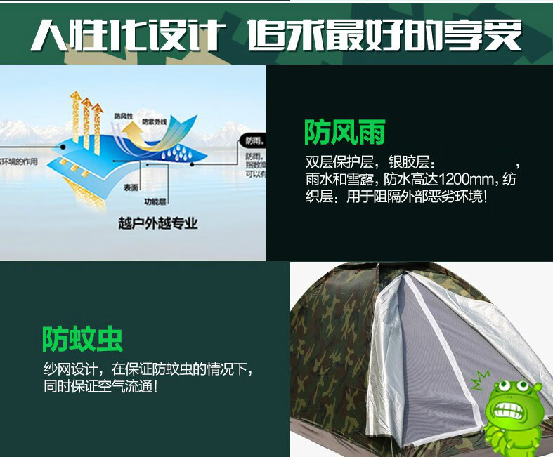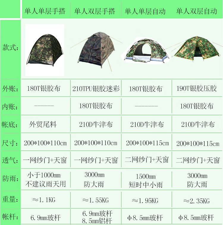 许棋杏单人帐篷小户外超轻1人室内迷彩防雨单兵便携式骑行露营野营 单人帐篷*1