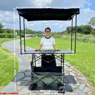 移动夜市摆摊小推车升降桌带遮阳棚露营车地摊户外营地拖车可折叠 10寸拖斗款(黑绿)+120黑色桌子+黑色顶棚