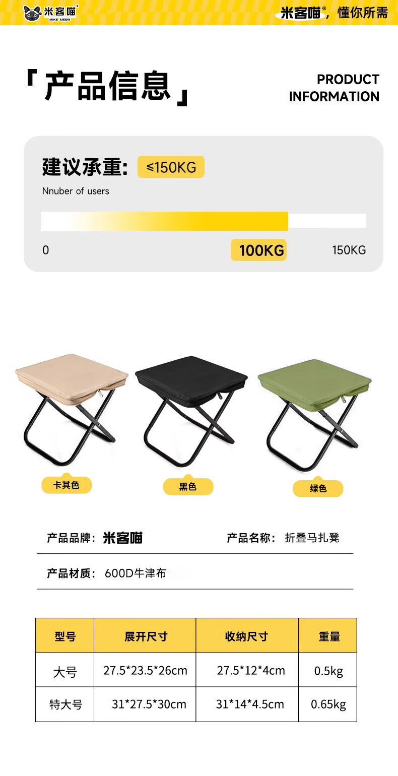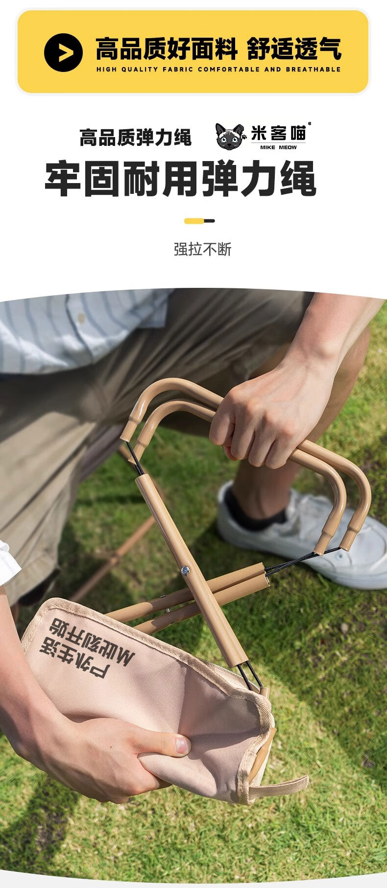 岩合户外折叠椅 小马扎折叠凳子 高铁旅行排队神器 野营露营便携椅子 黑色【中号】-配收纳袋