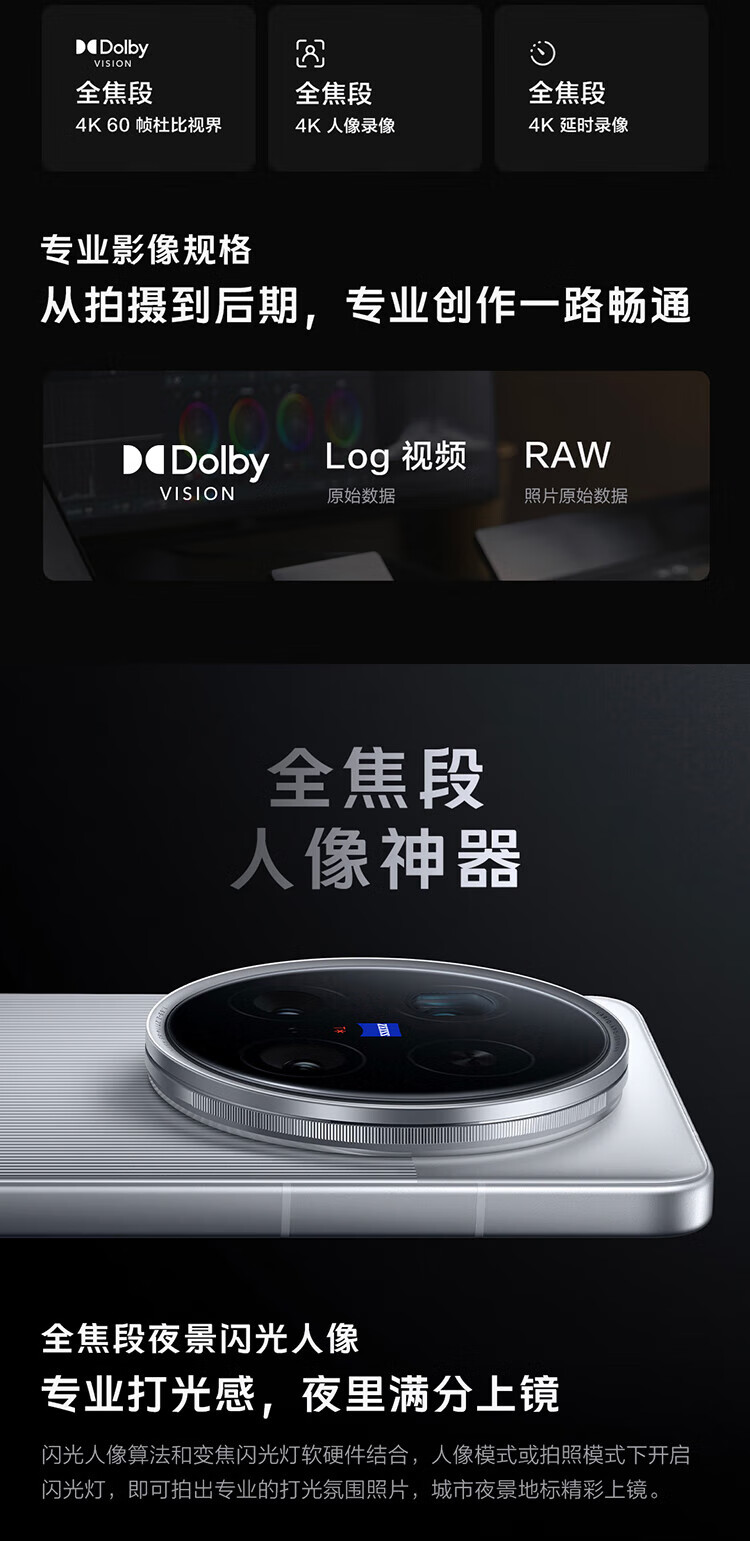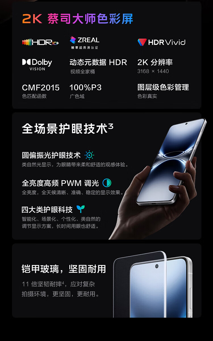 AI大模型,高频PWM调光,全焦段影像,潜望式长焦,防水防尘,无线充电,NFC,红外遥控,等深微曲屏