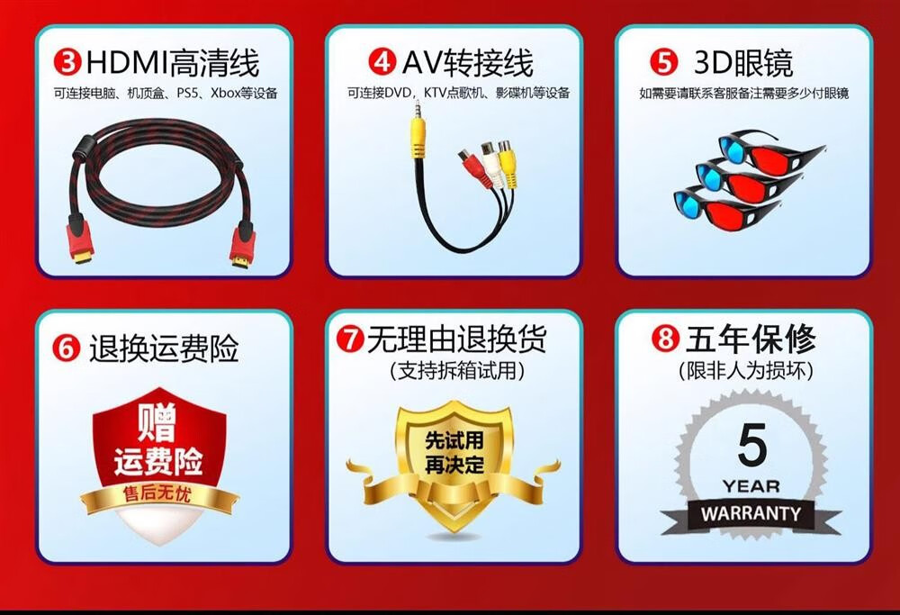 非常清晰,画质特别棒,意想不到的惊喜。不用安装,直接投在墙上,没限制,特别棒!音质效果特别好,也没杂音。功能很多,电视直播台和网络电视都有,我比较经常用爱奇艺。总之非常惊喜.