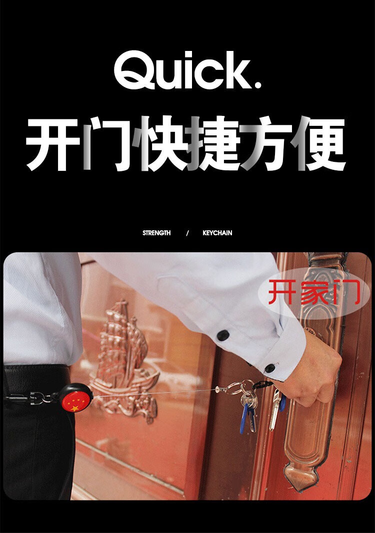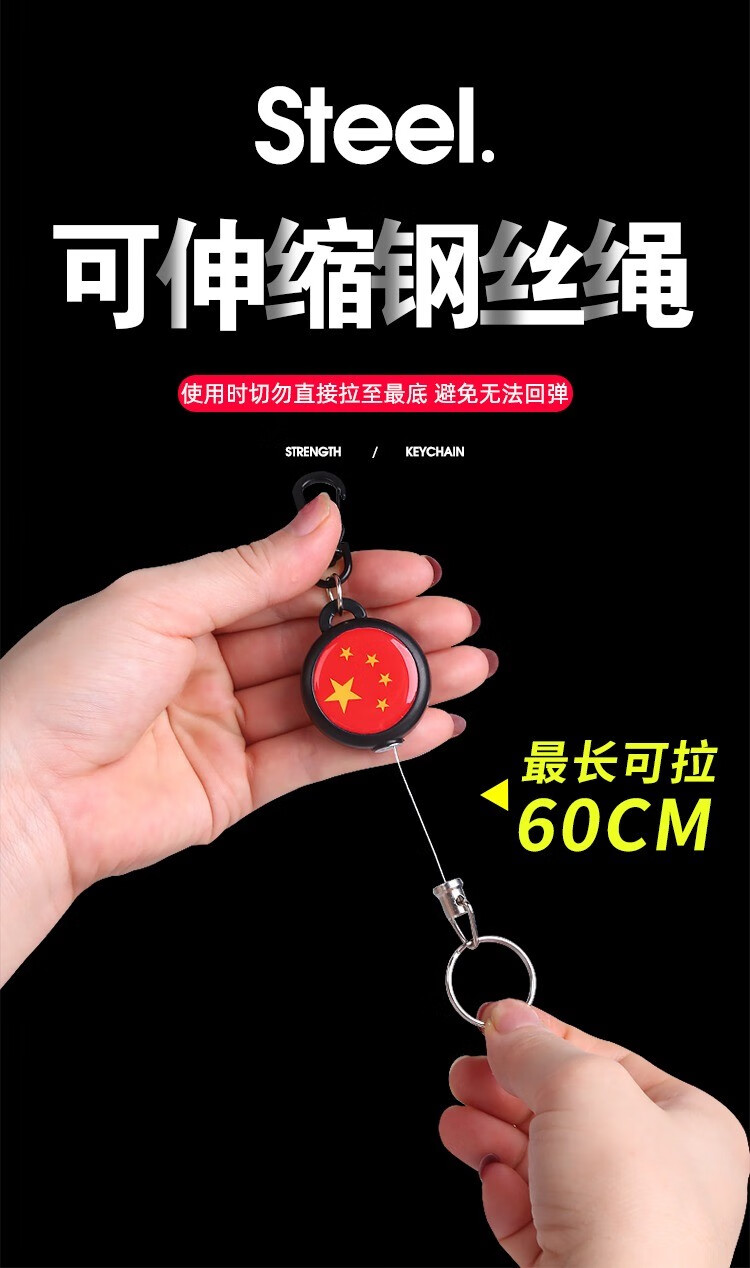 焱思泰伸缩钥匙扣钢丝绳可伸缩钥匙链防丢钥匙扣高回弹钢丝绳钥匙链挂件 伸缩钥匙扣(全长可拉60cm) 【升级高强度加粗钢丝绳】