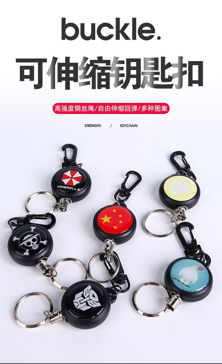 Sky window 伸缩钢丝绳钥匙环 防丢防盗伸缩钥匙扣 多用途易拉扣 JP款