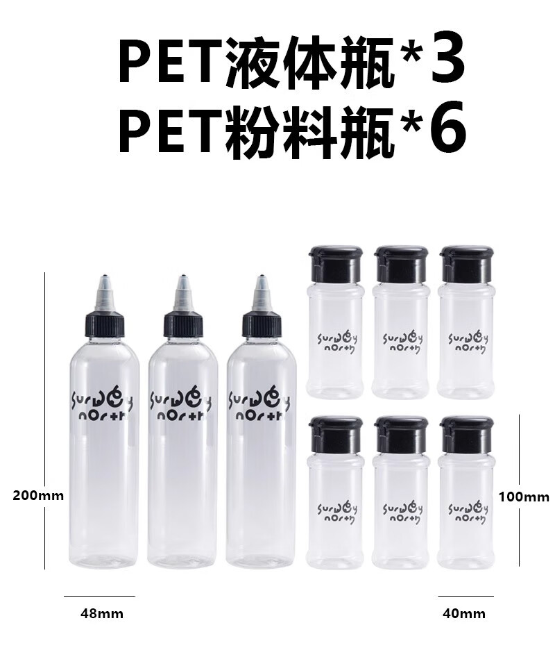 SURVEY NORTH 北部勘察露营野炊调味瓶套装户外便携式收纳PET调料瓶分装油瓶防漏防撞 粉料瓶*6+液体瓶*3【送贴纸】