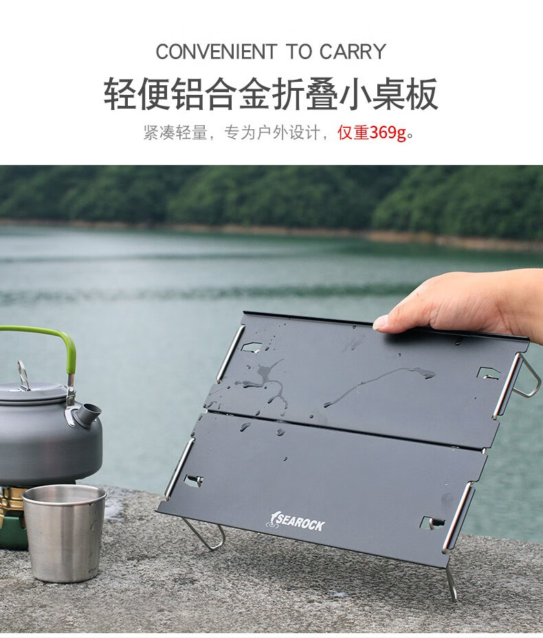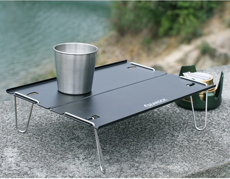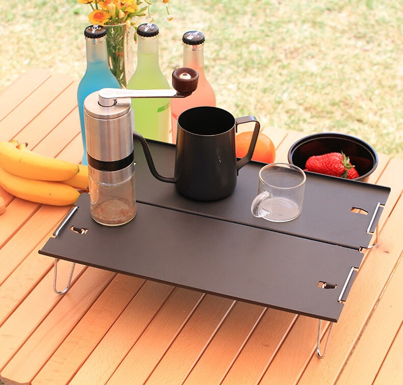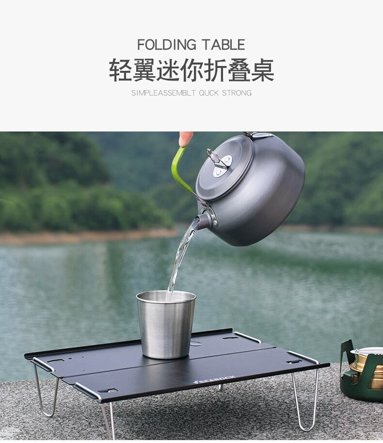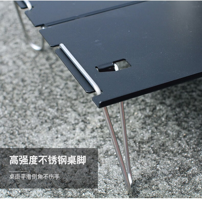 oeny户外喝茶桌露营铝合金轻量化便携折叠小桌子野外超迷你铝板小茶台 小号铝板折叠桌(黑色)