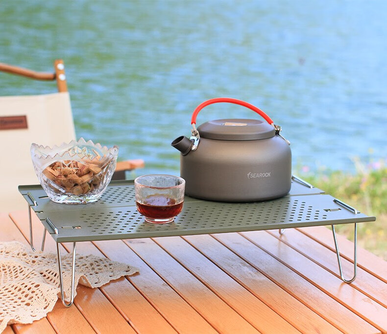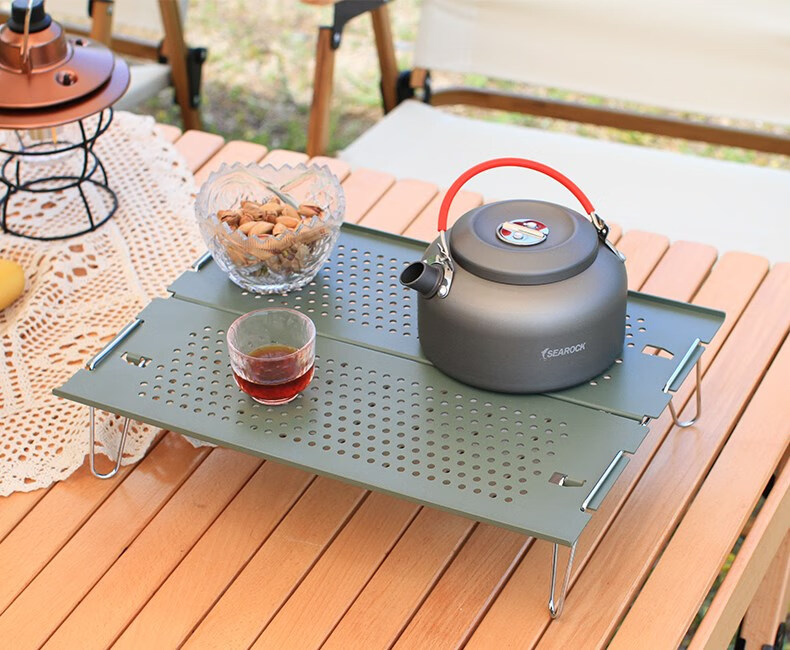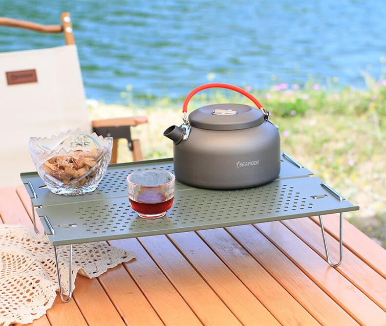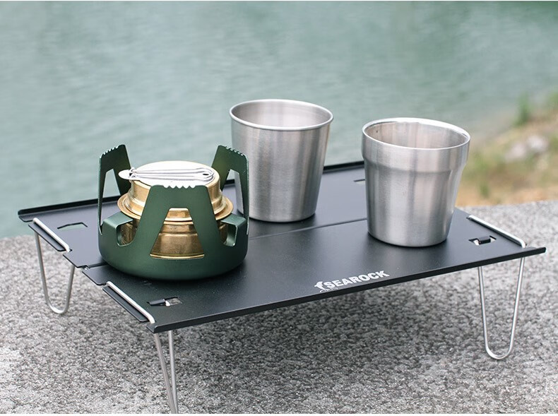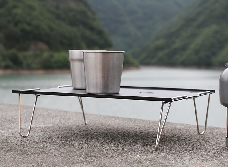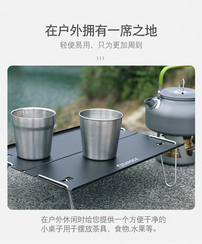 oeny户外喝茶桌露营铝合金轻量化便携折叠小桌子野外超迷你铝板小茶台 小号铝板折叠桌(黑色)