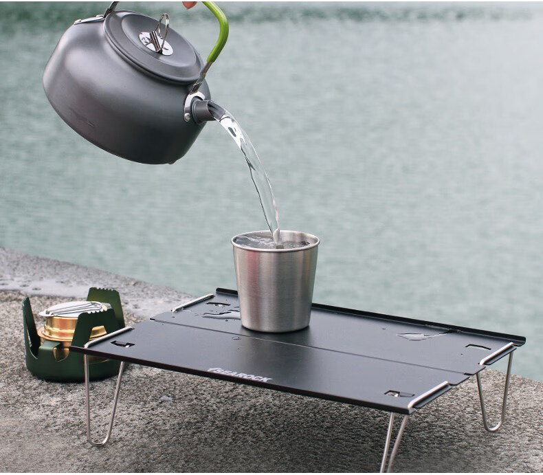原始人铝合金折叠桌户外露营徒步登山野餐小型便携折叠超轻小桌子 黑色