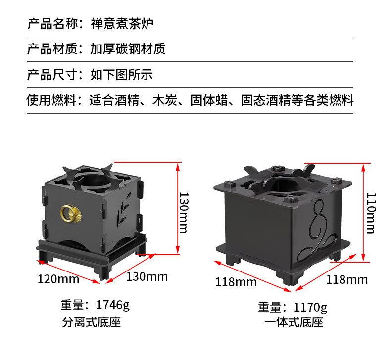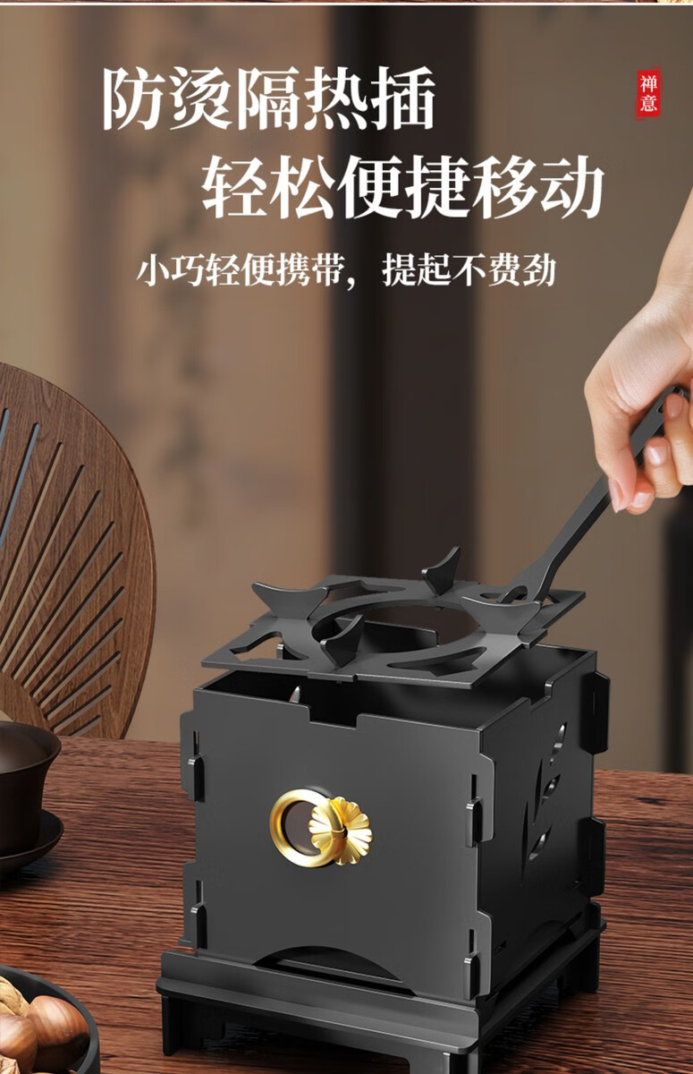 德国精工冬季小丁炉炭火炉泡茶炉烤火炉煮茶取暖炭炉小型木炭钢炉 小号煮茶炉[一体式]