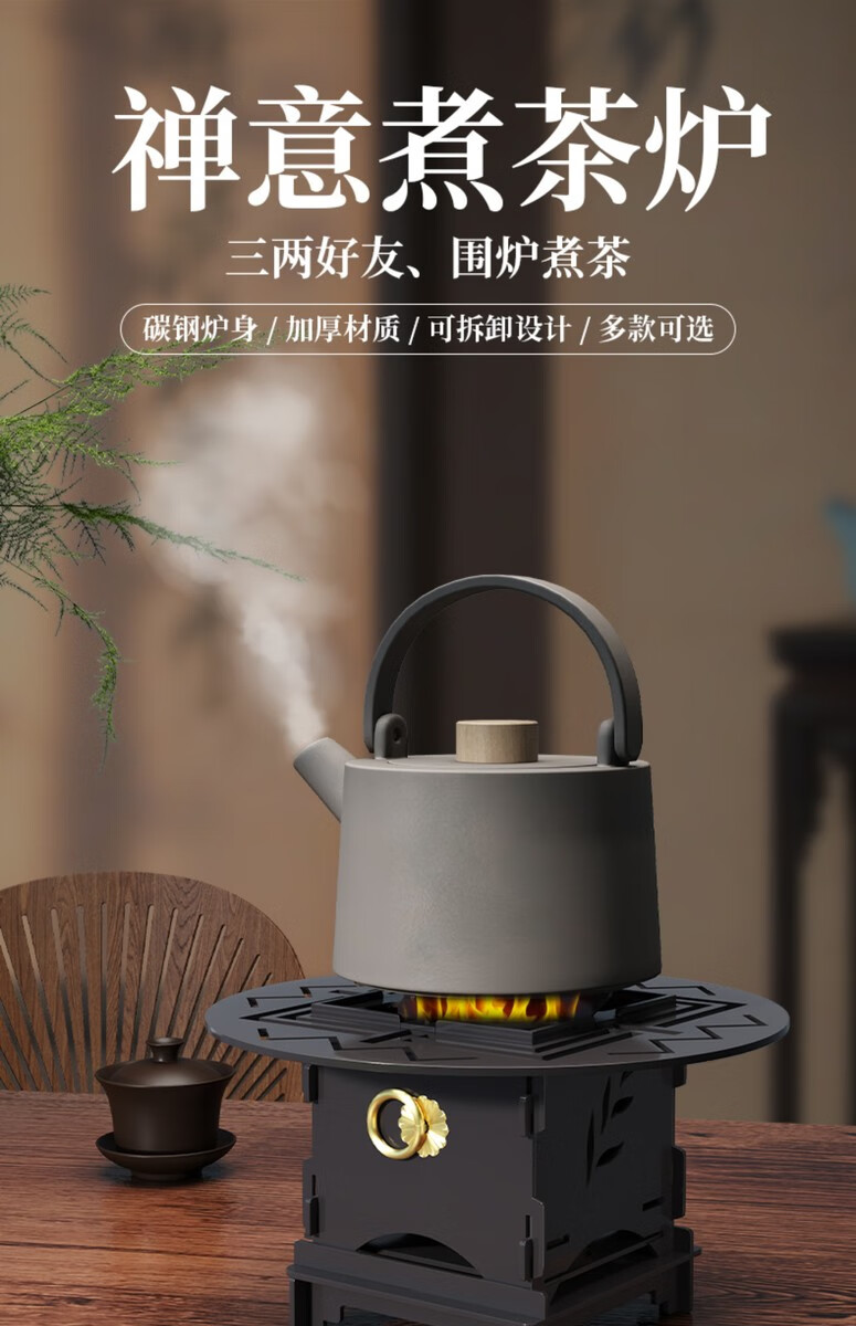 玮贤围炉煮茶户外铸铁煮茶炉碳钢烧碳酒精家用木炭碳炉烧水钢炭取暖 内胆