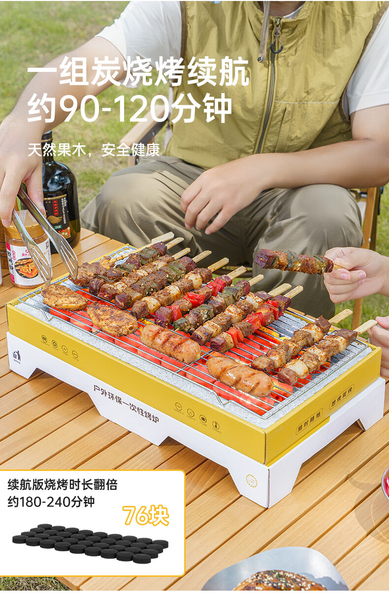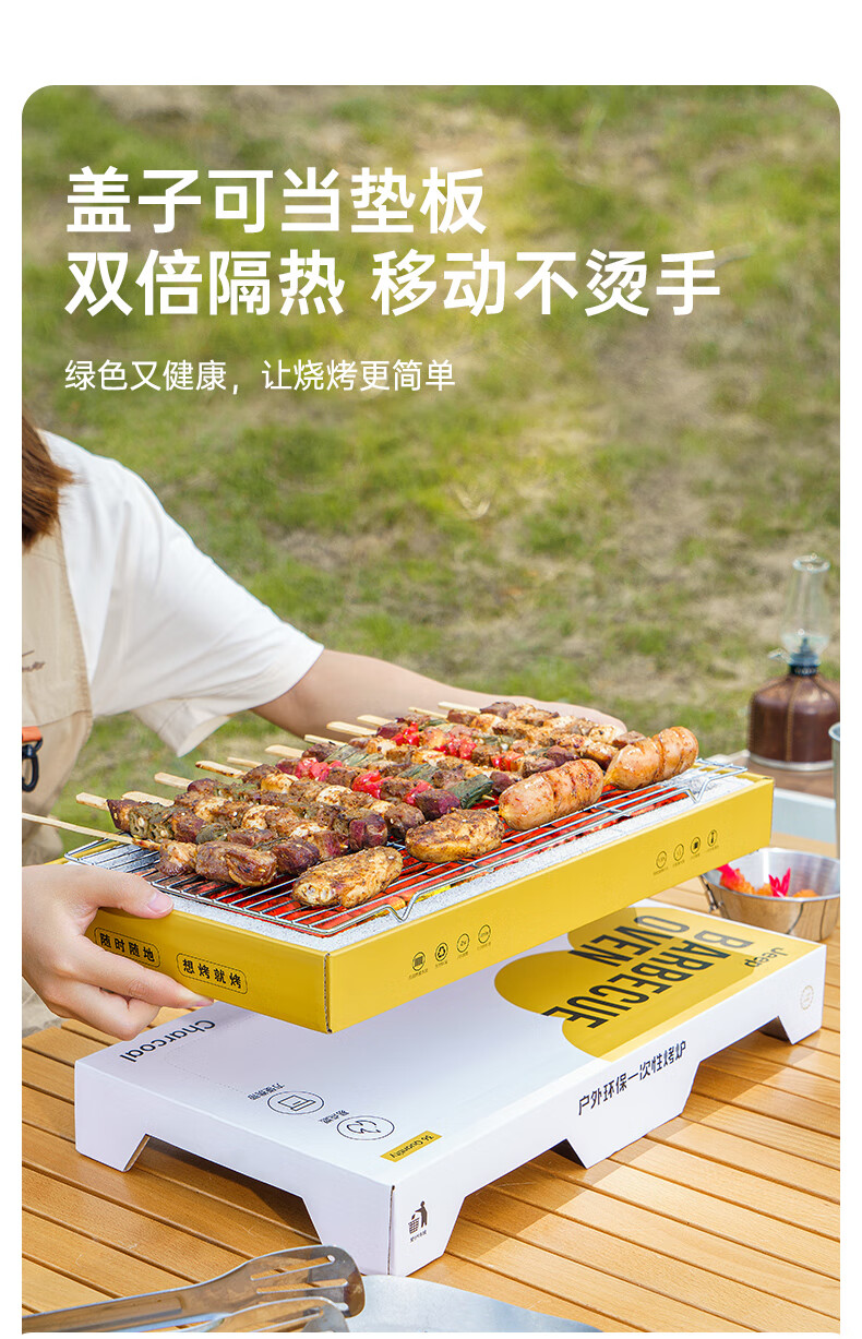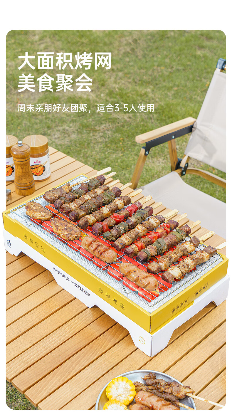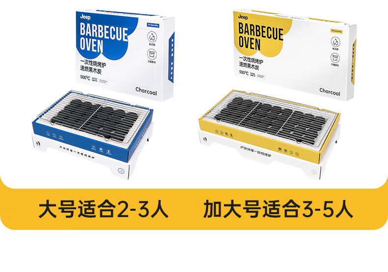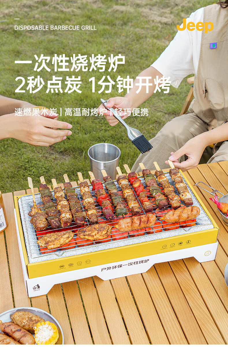 JEEP户外一次性烧烤炉露营无烟工具烧烤架用品便携手提折叠烤串炉炉子 大号一次性烧烤炉【送果木炭】