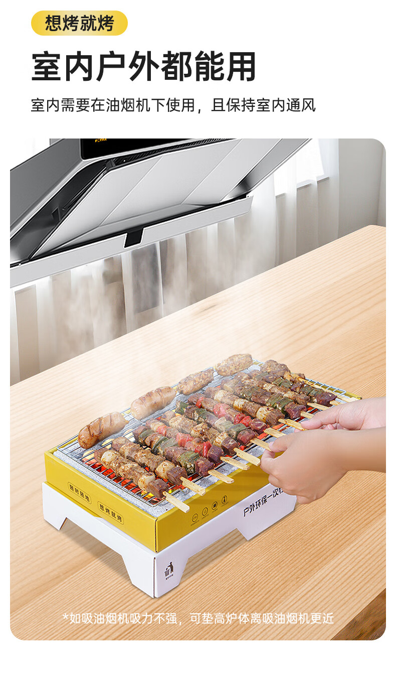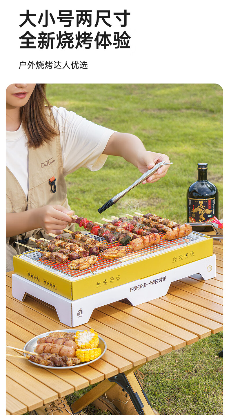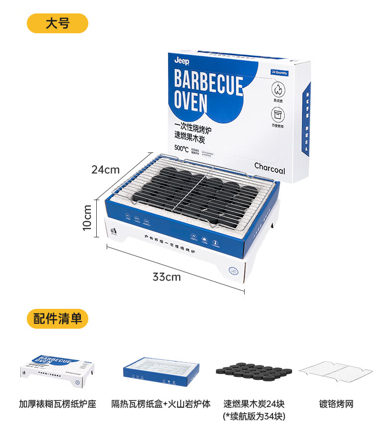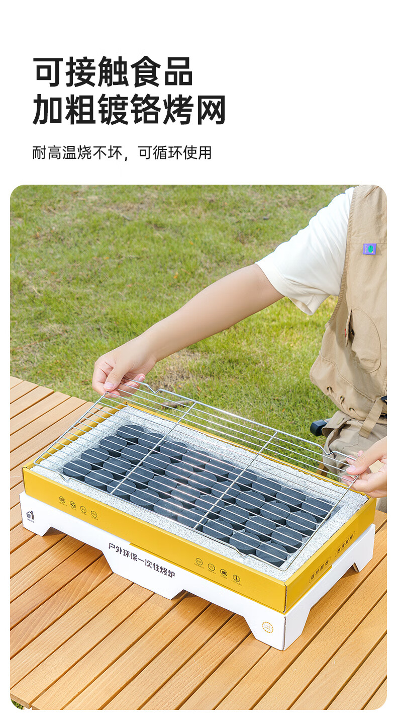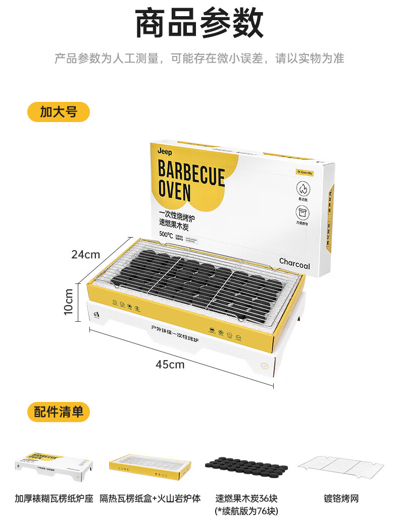 JEEP户外一次性烧烤炉露营无烟工具烧烤架用品便携手提折叠烤串炉炉子 大号一次性烧烤炉【送果木炭】