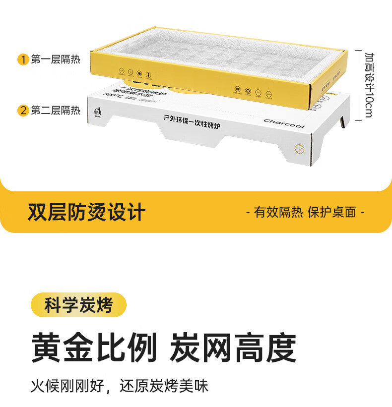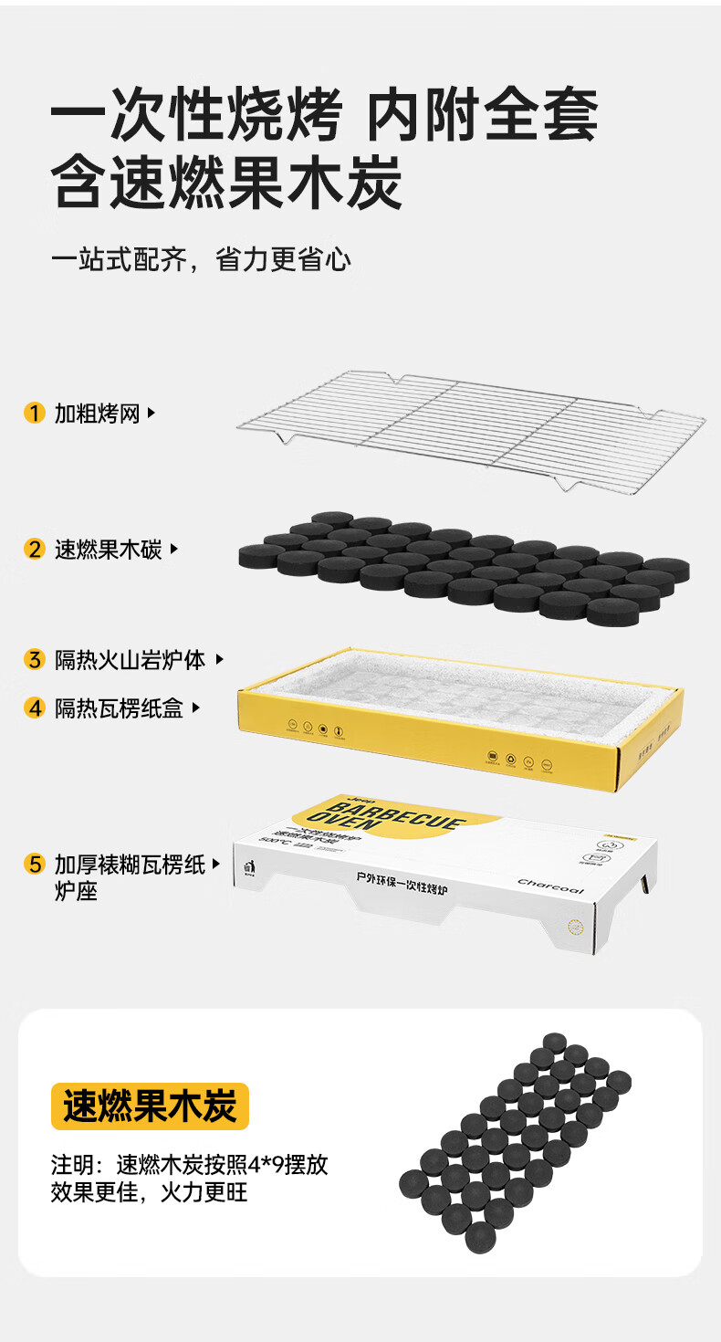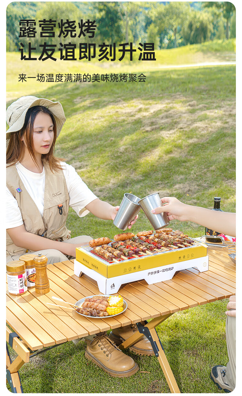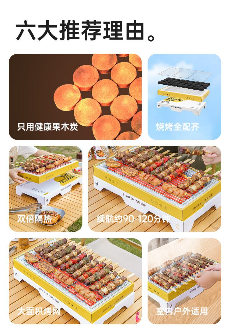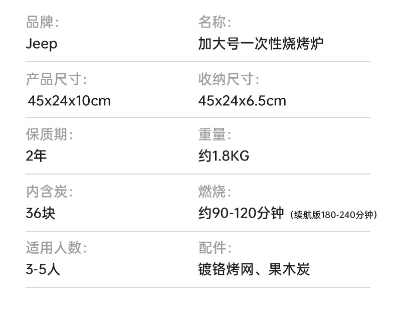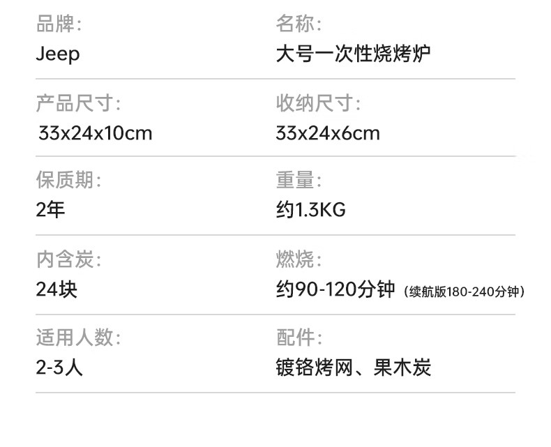 JEEP户外一次性烧烤炉露营无烟工具烧烤架用品便携手提折叠烤串炉炉子 大号一次性烧烤炉【送果木炭】
