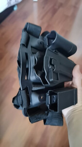 选了半天,想找一个这种快捷的枪套,买了好几个版本都给人退回去了,只有这个版本寄过来之后,非常喜欢两次,还有两个可以插警棍和手电筒的地方,设计非常合理,帮腿上感觉也很酷,非常满意的一次购物