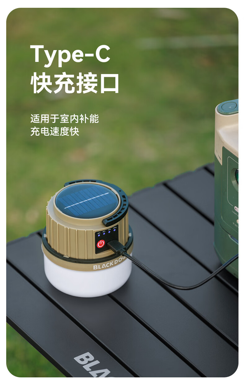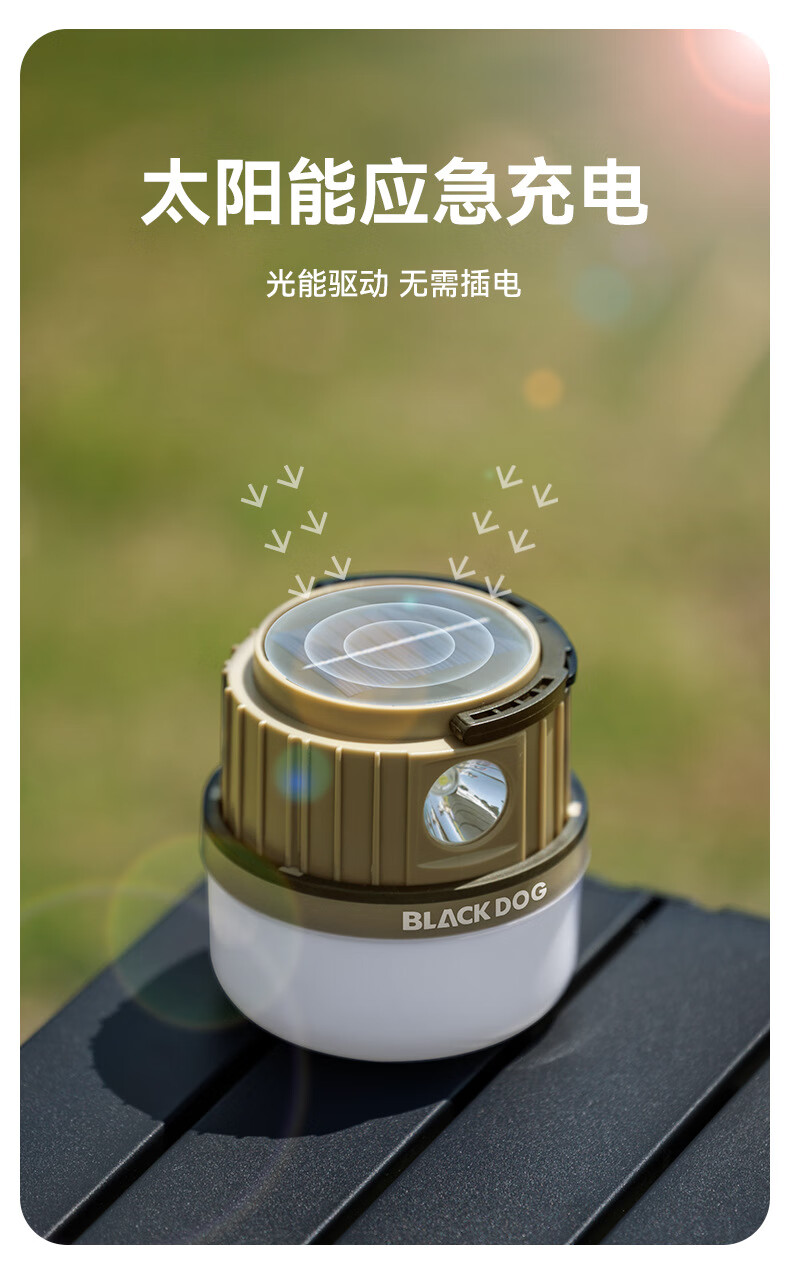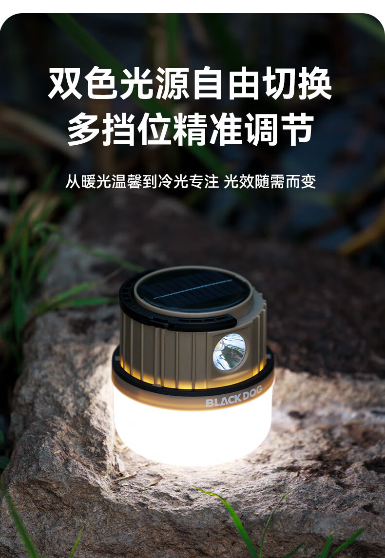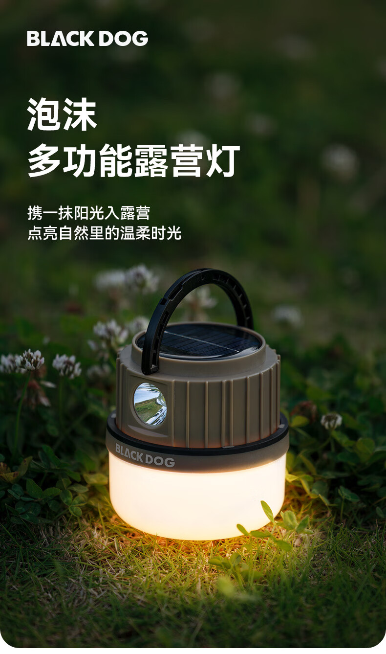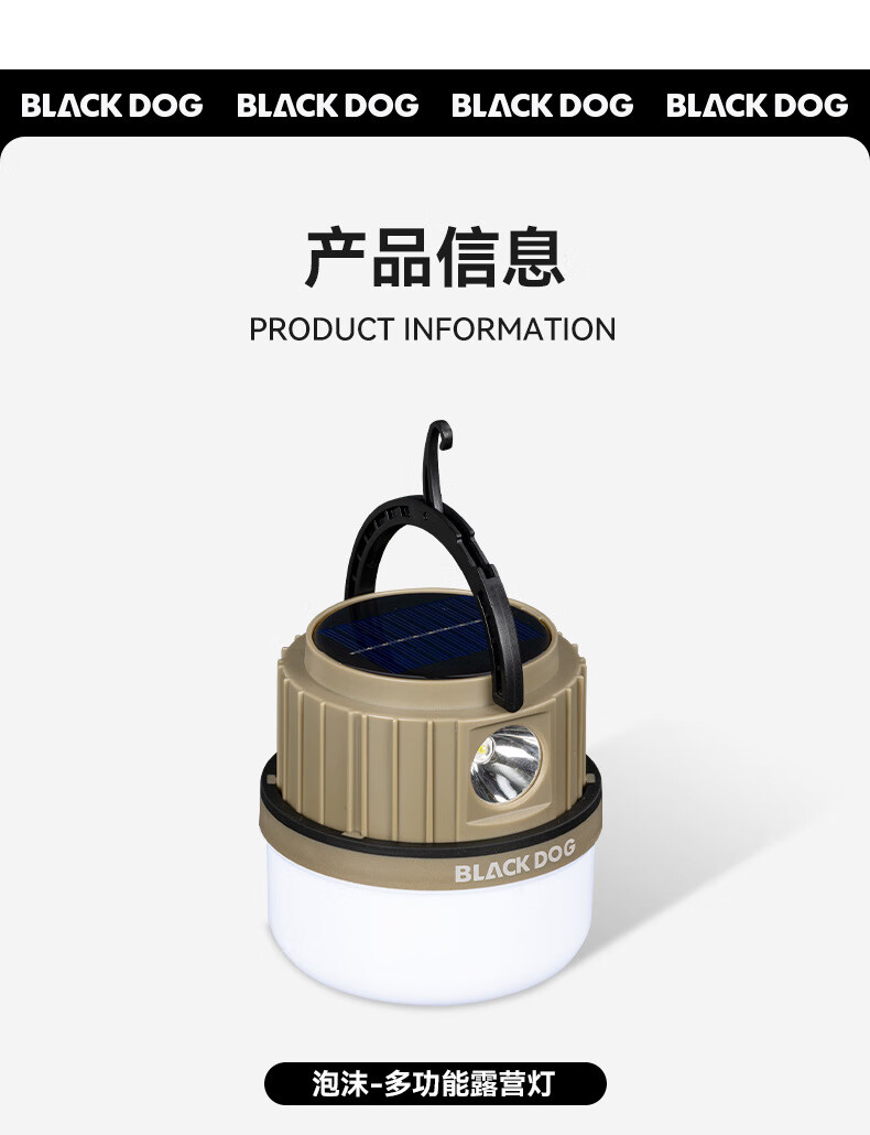 black dog黑狗户外太阳能充电灯多功能露营灯超长续航照明灯挂式野营氛围灯 泡沫多功能太阳能露营灯-夜幕黑