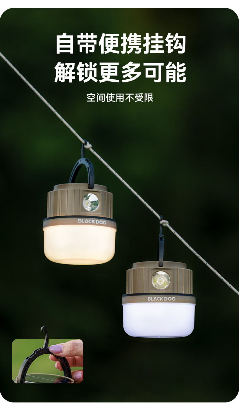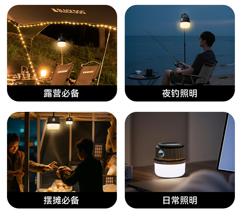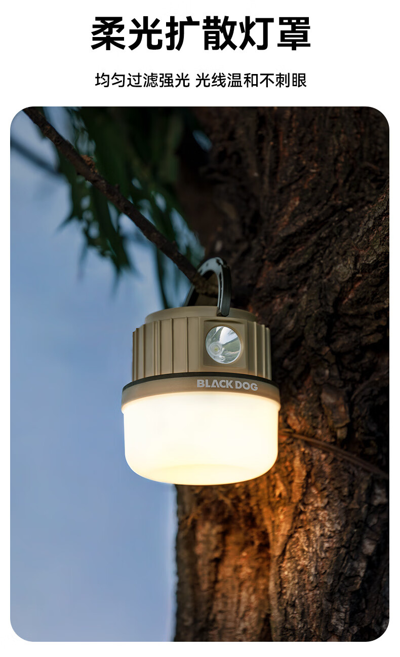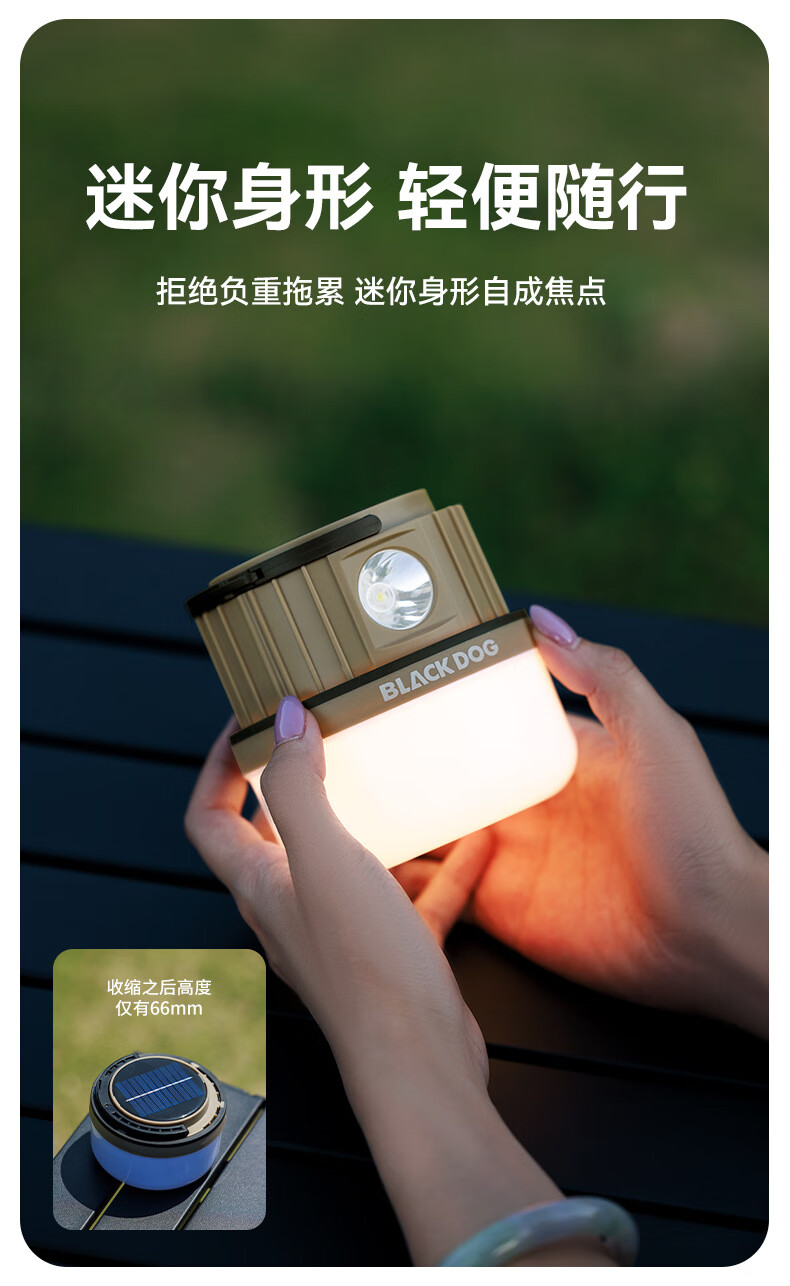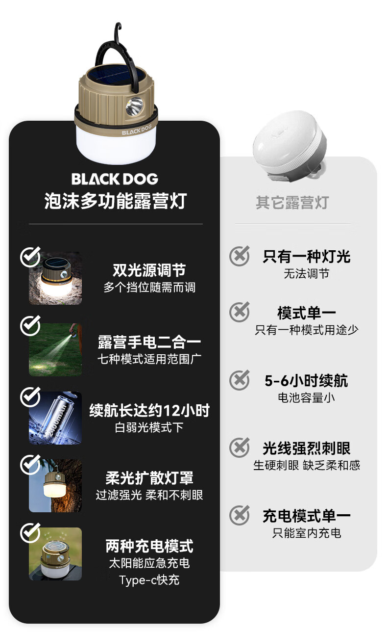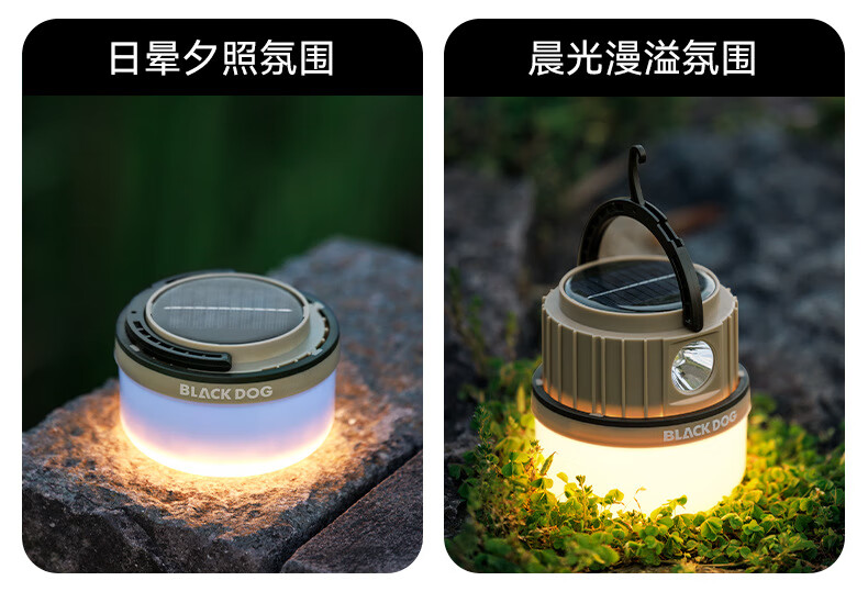 black dog黑狗户外太阳能充电灯多功能露营灯超长续航照明灯挂式野营氛围灯 泡沫多功能太阳能露营灯-夜幕黑