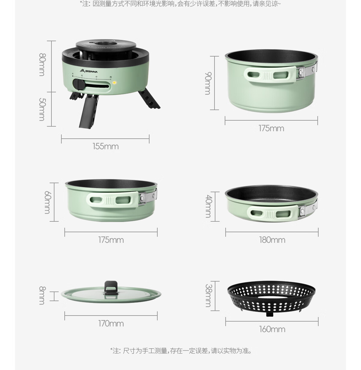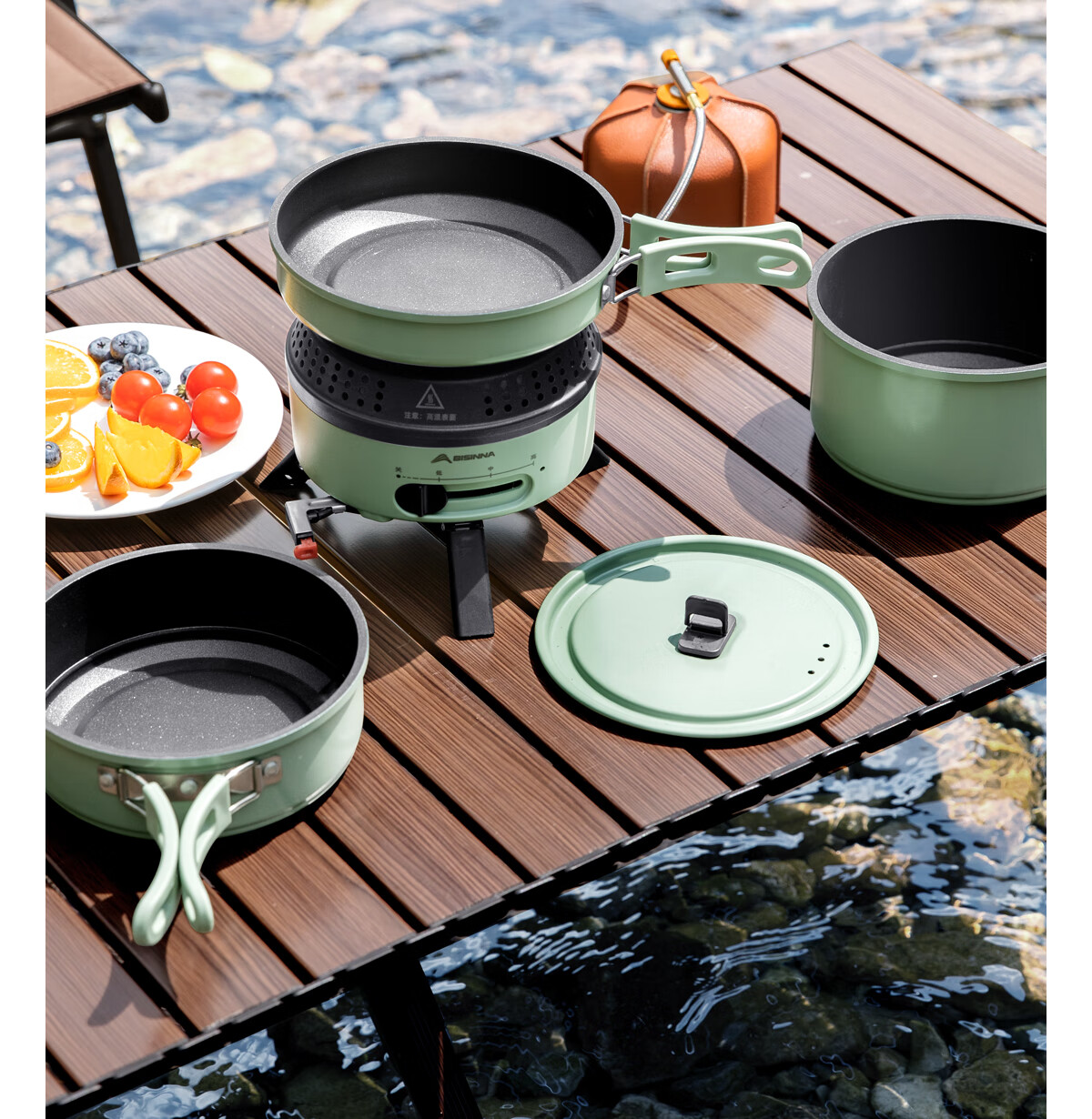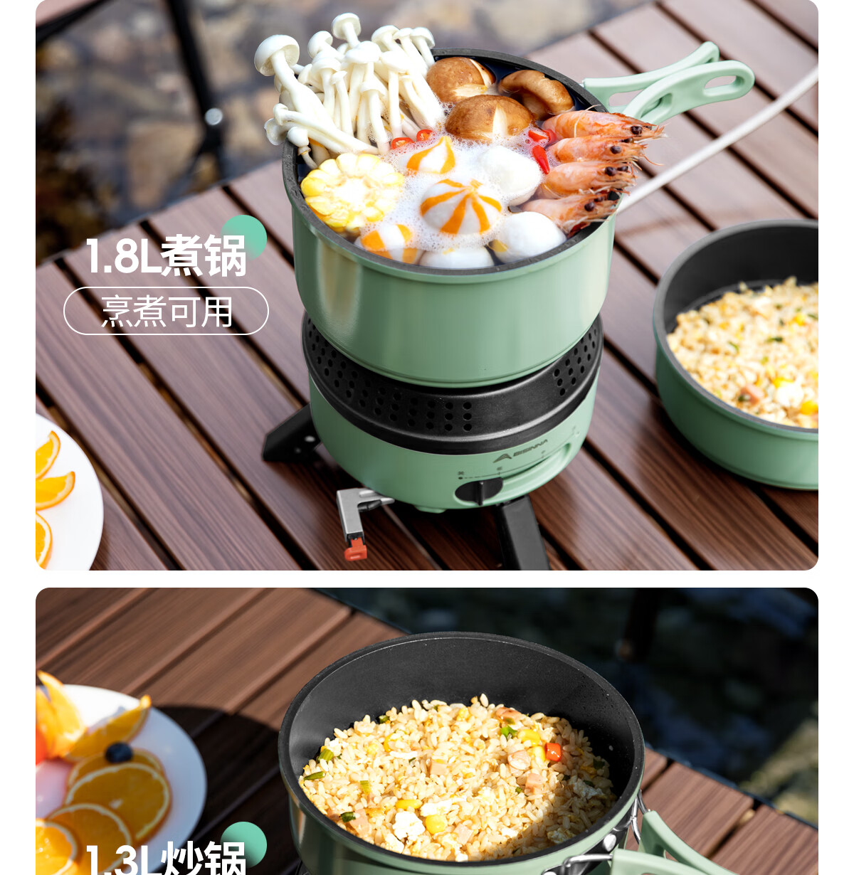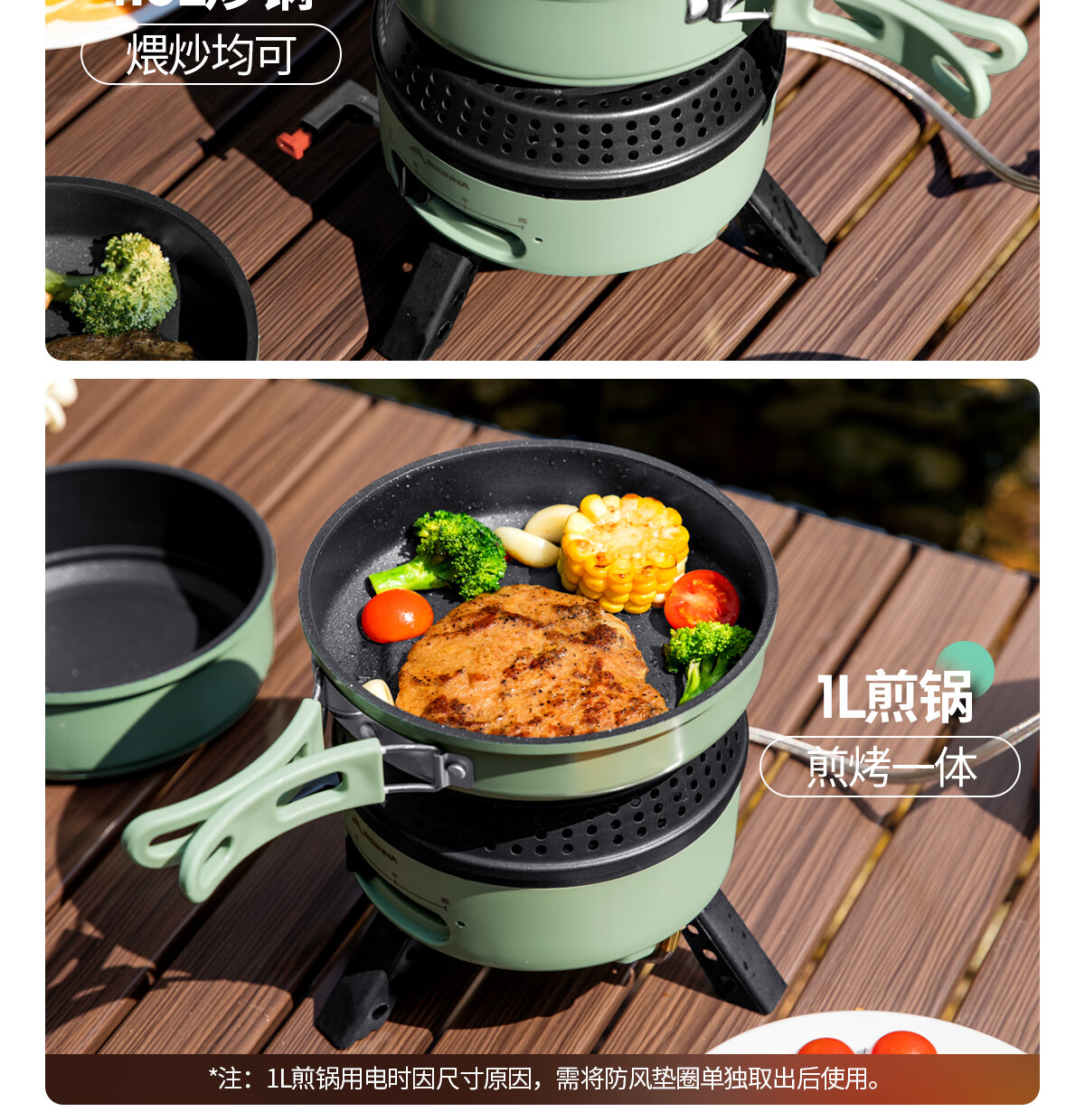 电车小厨露营料理锅套装户外炉具便携式小型野外电煮锅550w功率 橄榄绿10件套