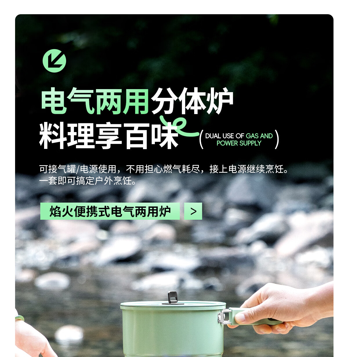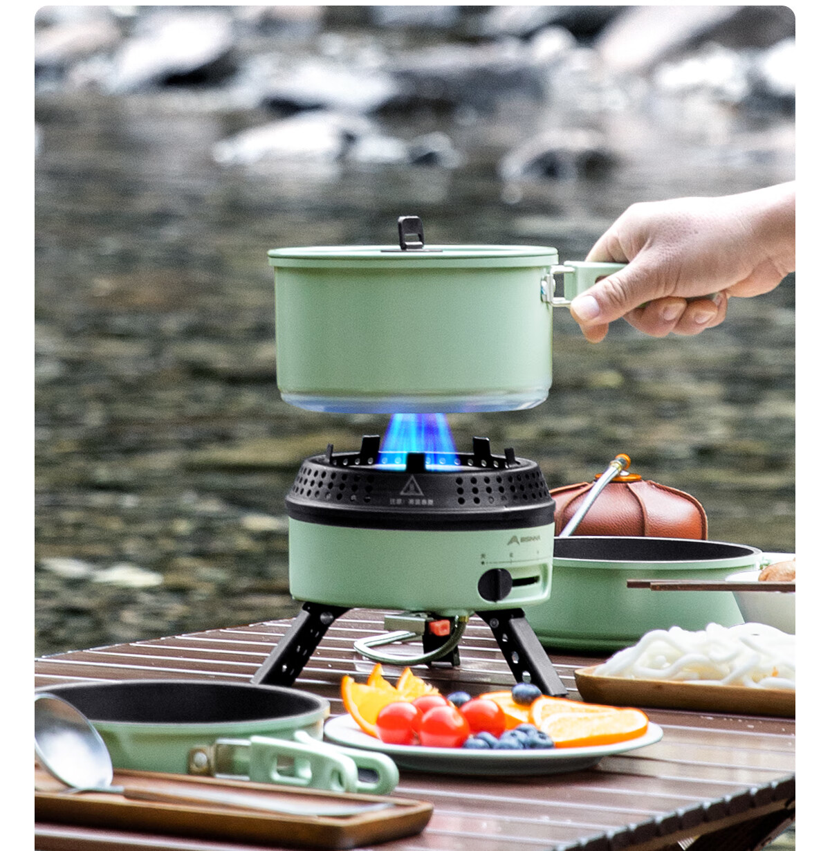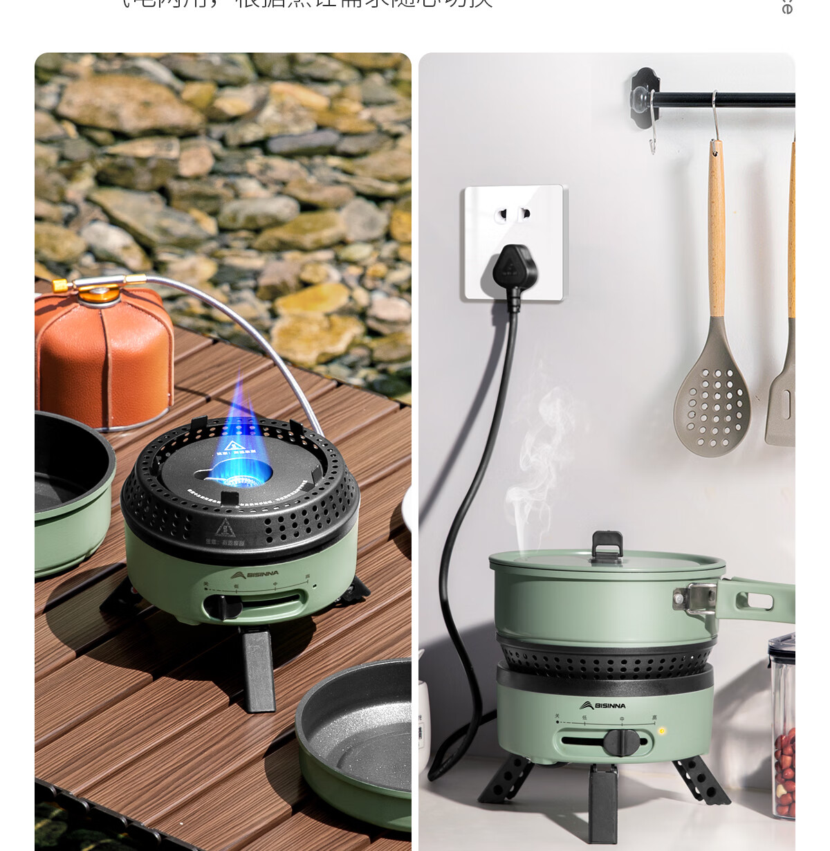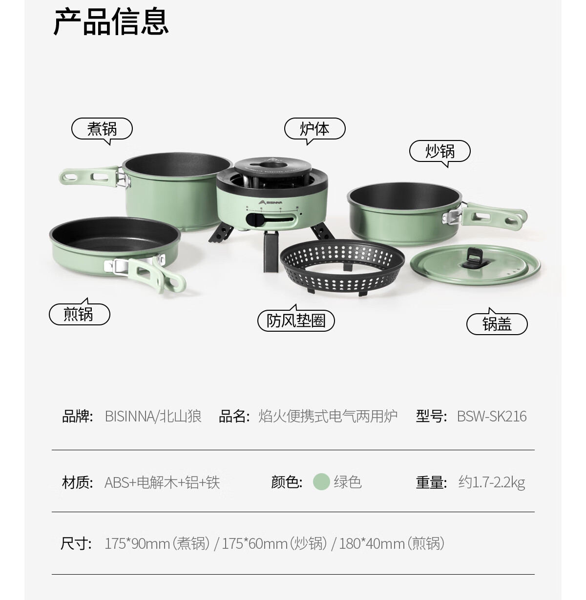电车小厨露营料理锅套装户外炉具便携式小型野外电煮锅550w功率 橄榄绿10件套