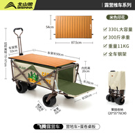 北山狼 户外露营车折叠推车 带桌板营地车野营推车大容量 米色 330L 有刹车 【原创印花】+木纹铁桌板
