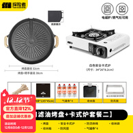 探险者烤盘户外烧烤盘卡式炉韩式烤肉盘加厚电火双用烤盘露营家用野餐 【双用滤油烤盘+卡式炉套餐二】