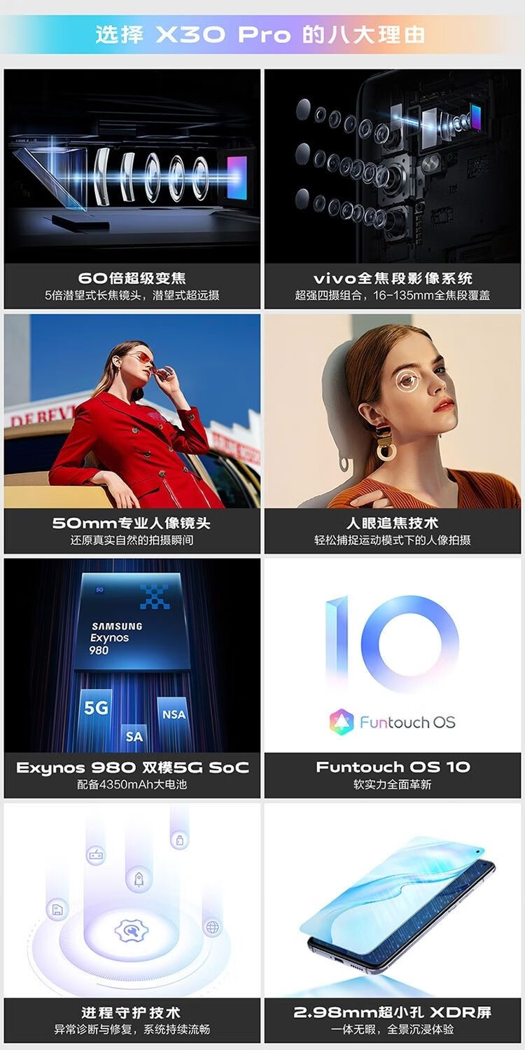 vivo全新正品 vivo X30 Pro旗舰智能5g机全网通智能机 曜石 8GB+256GB 官方标配