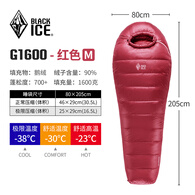 黑冰G系列户外鹅绒露营防寒木乃伊式羽绒睡袋成人 红色G1600 M码 新标准 全新升级