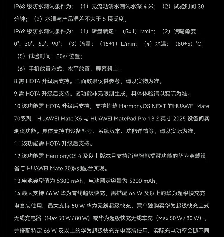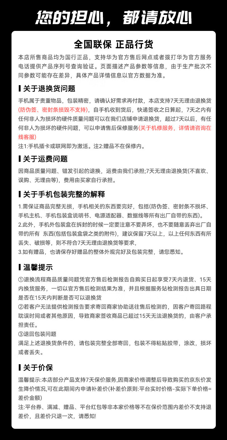 手机(含内置电池)X 1华为SuperCharge充电器 X 1USB Type-C 数据线 X 1透明保护壳 X 1保护膜(出厂贴在手机上)X 1快速指南 X 1取卡针 X 1三包凭证 X1
