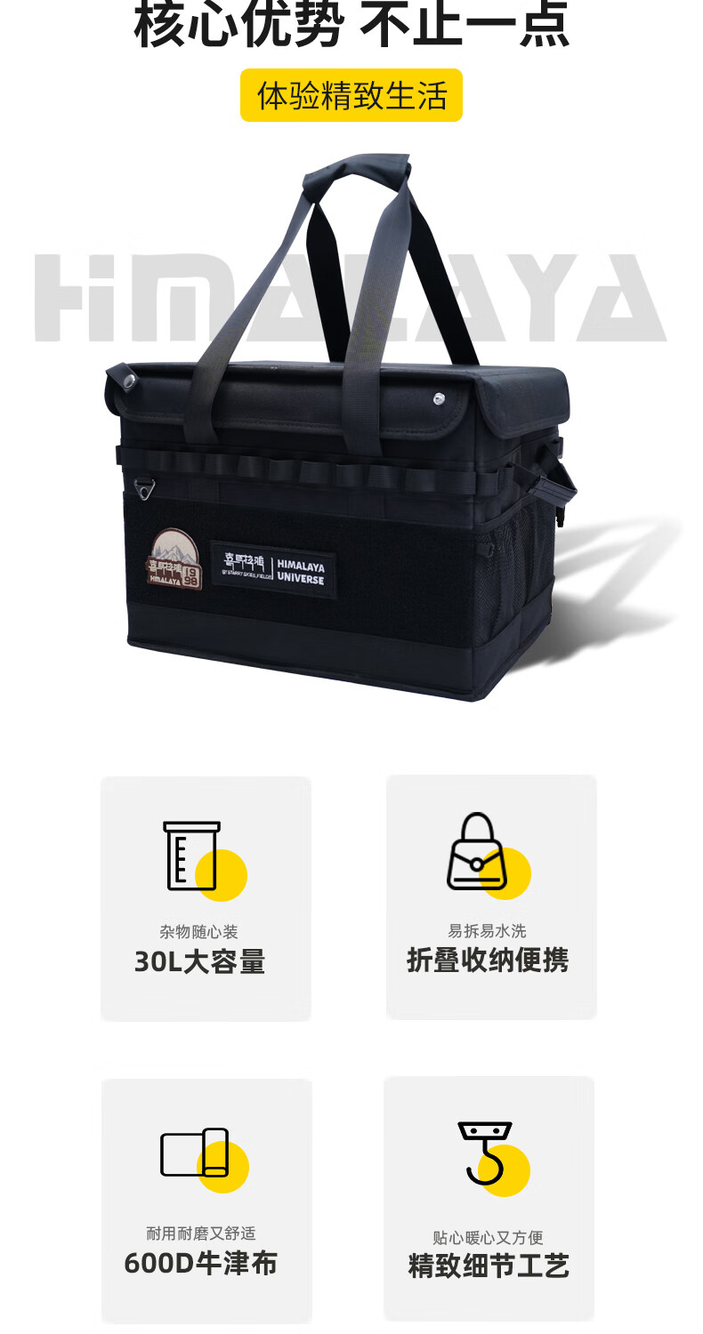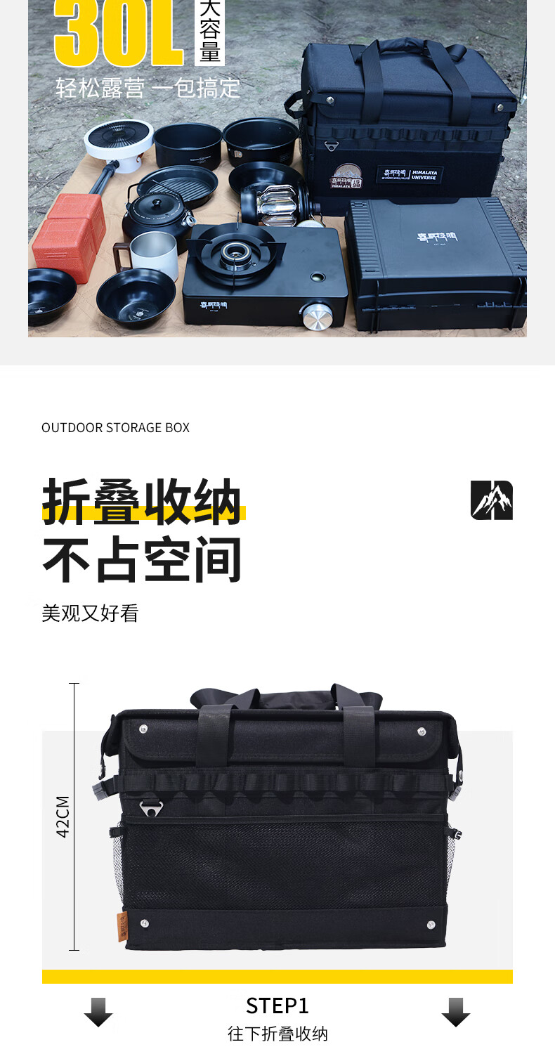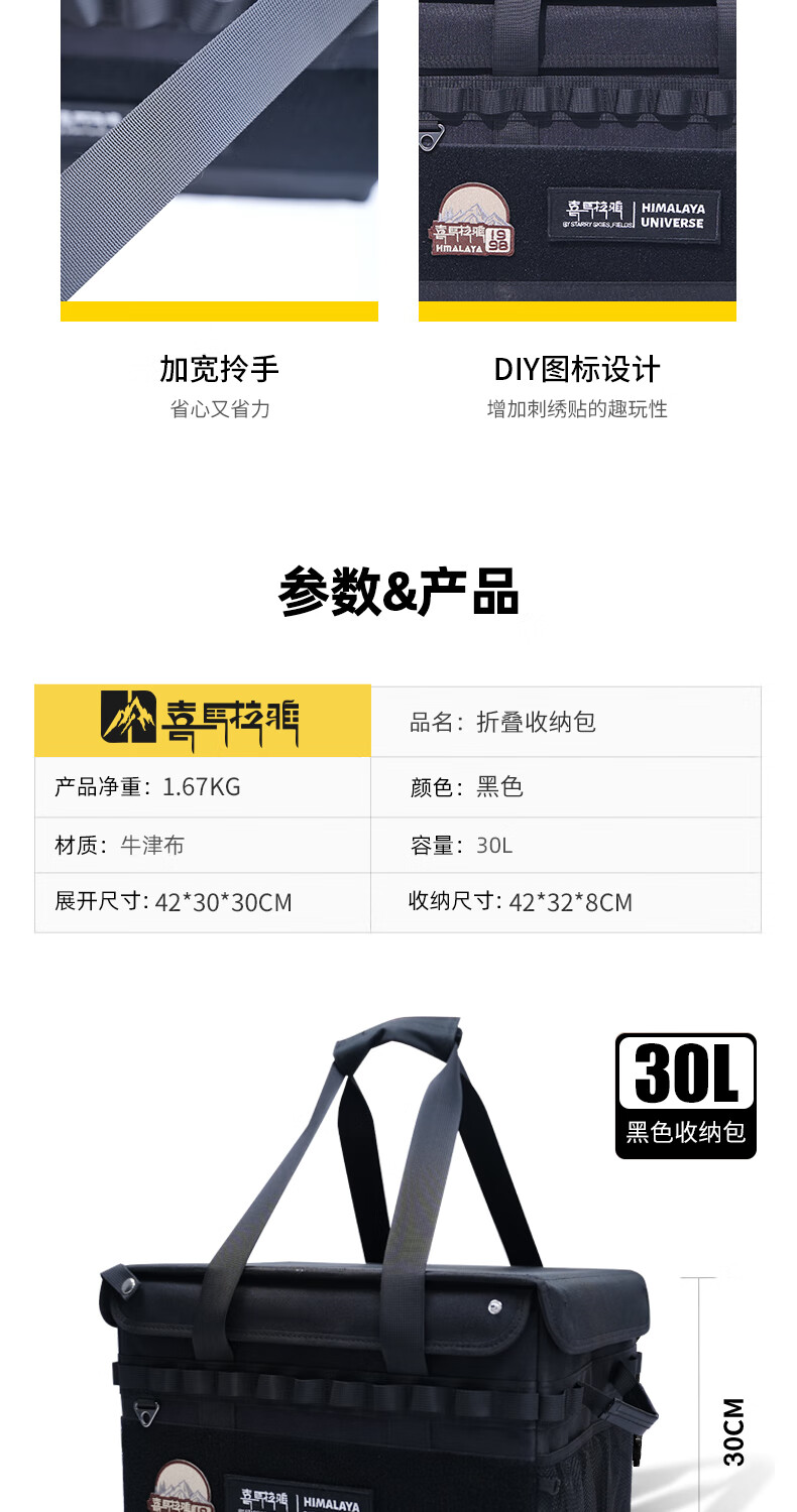 喜马拉雅露营收纳箱户外装备收纳包便携折叠大容量野营餐具整理箱 折叠收纳箱黑色