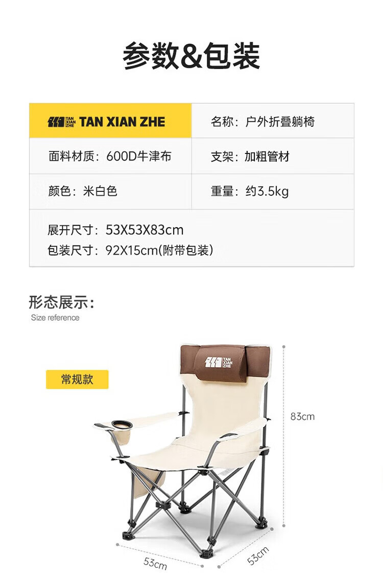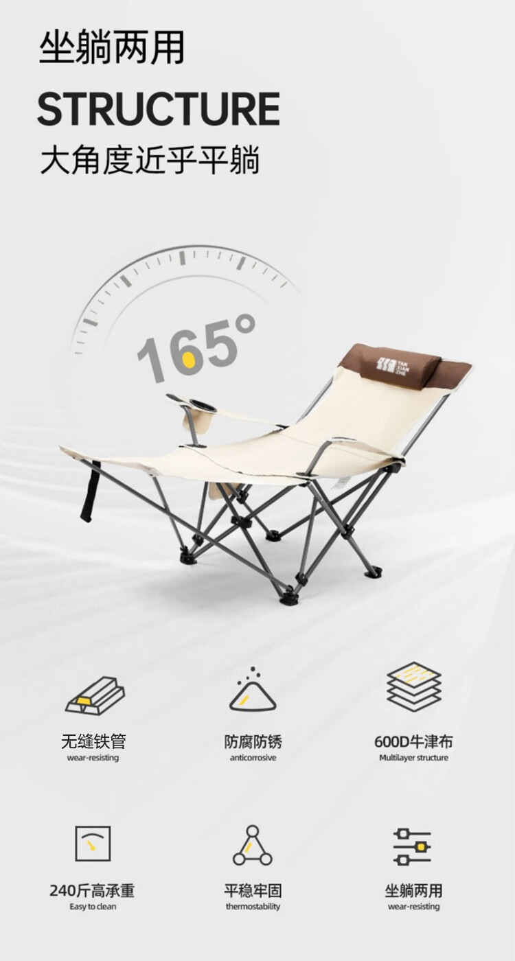 探险者(TAN XIAN ZHE)户外折叠椅躺椅午休椅子便携陪护家用午睡阳台露营椅沙滩坐躺两用 【可坐可躺】躺椅午休椅+加厚头枕