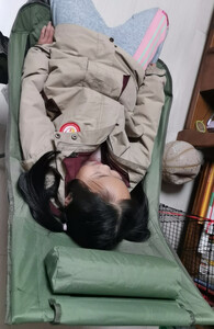 不错的折叠椅 一次买了4把,两把中号,一把小号 一把大号。 小孩适合小朋友坐,脚不会悬着,能落地。 大号适合躺着休息,小丫头特别喜欢躺椅。但提着稍微重了点。 中号适合户外休闲,草坪上晒太阳。提着也不重,身体下滑一点也能躺,但没有大号舒坦。