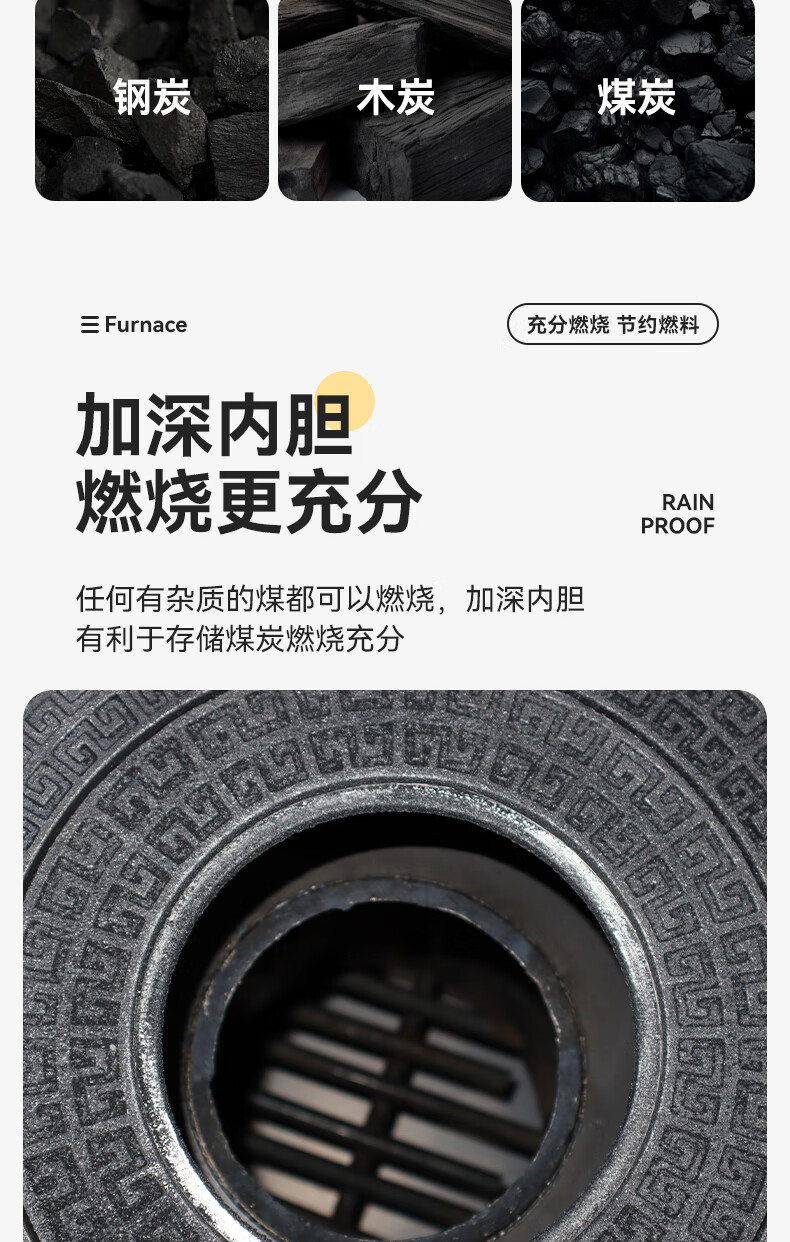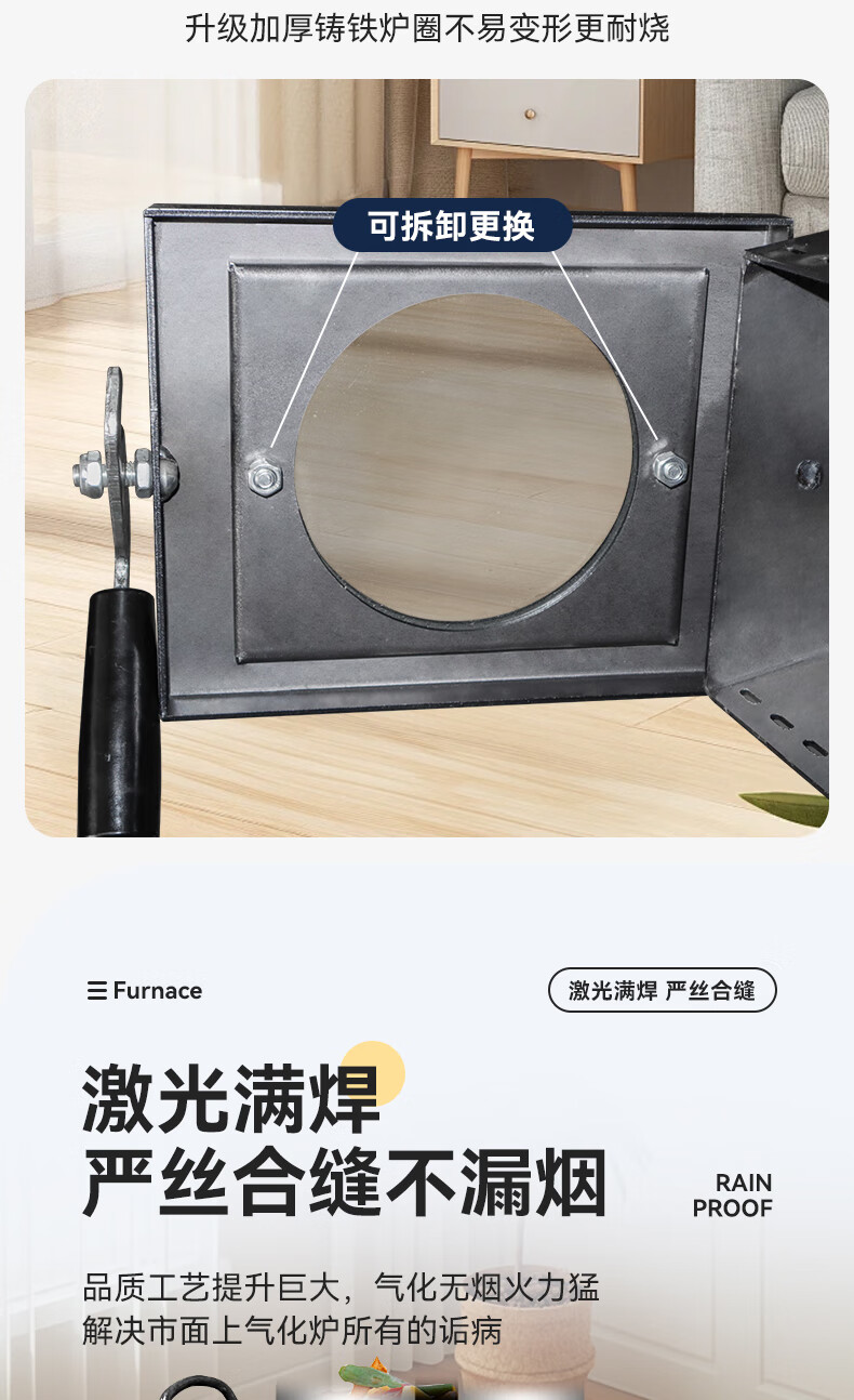 农村取暖炉加厚家用室内柴火煤炭柴煤两用火炉节能气化铸铁炉子 大号气化圆柱铸铁炉胆 炉子加两米烟筒一个弯头