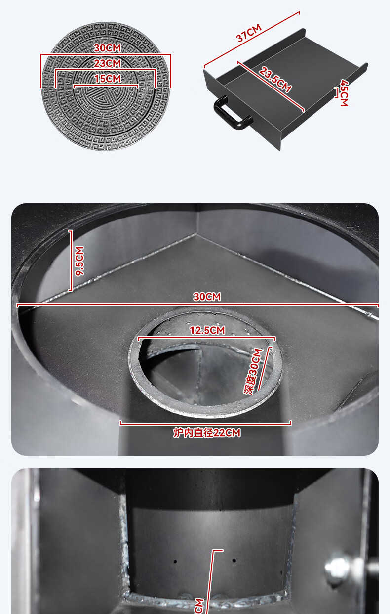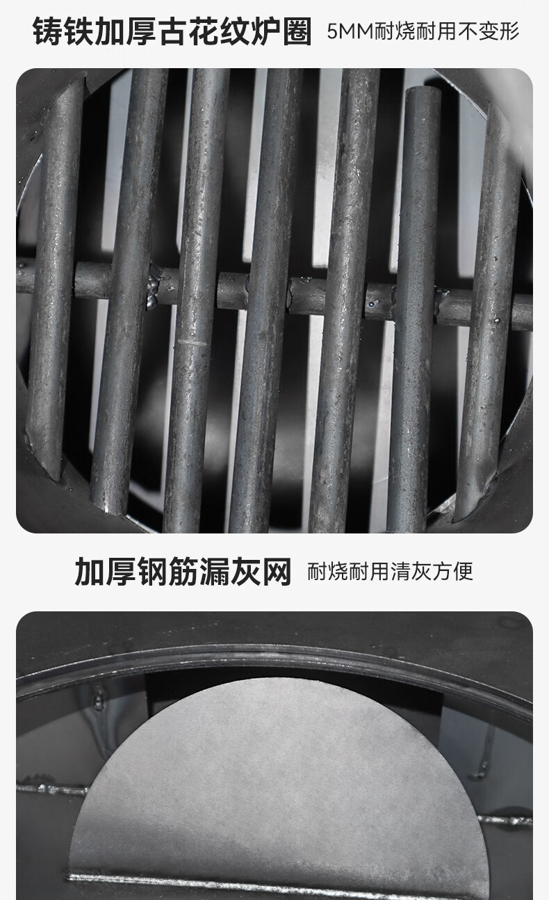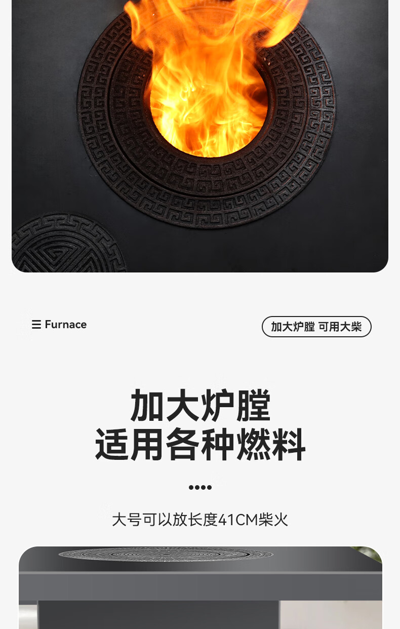 柏潮新型柴火炉灶取暖炉无炉加厚农村家用取暖柴煤炭炉通炕做饭室内 弯头篦子钩子三件套 宽30/长50做饭烧水取暖80平方